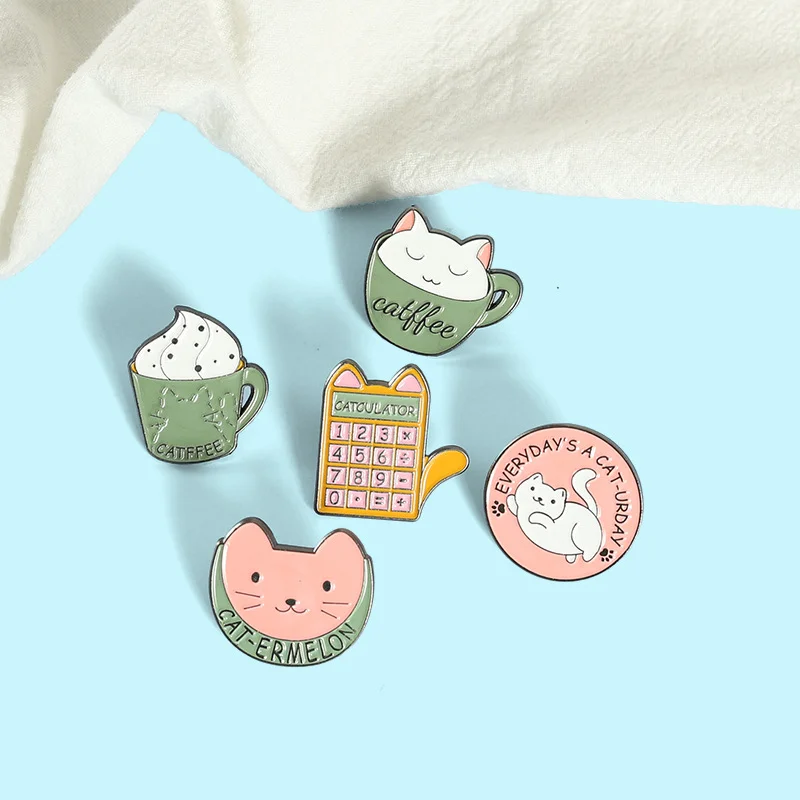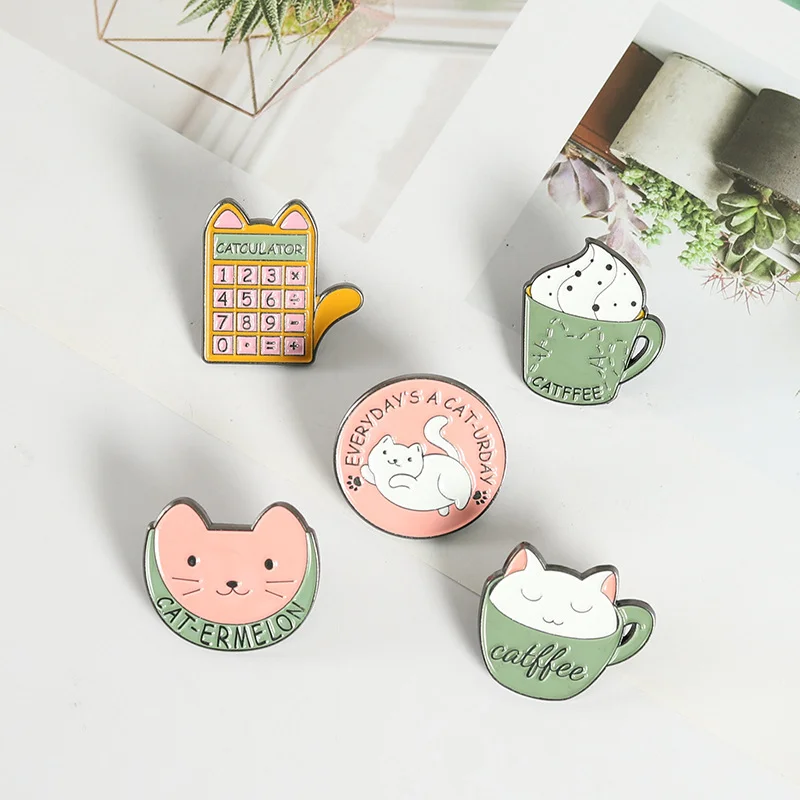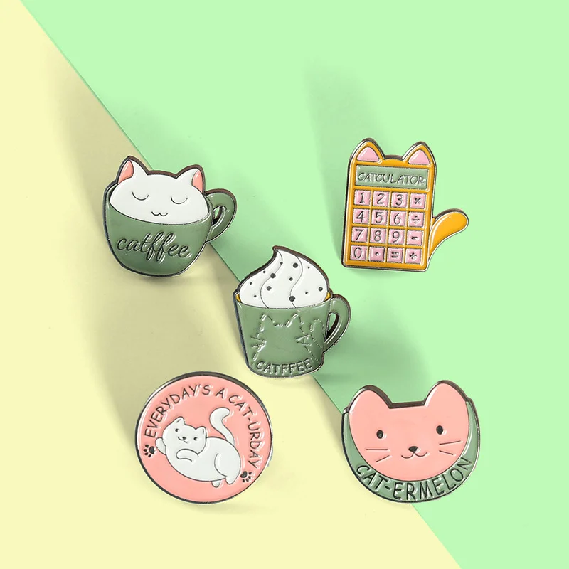 AliExpress Hot New Products Creative Cartoon Cat Coffee Cup Computer Shaped Alloy Paint Accessory Brooch