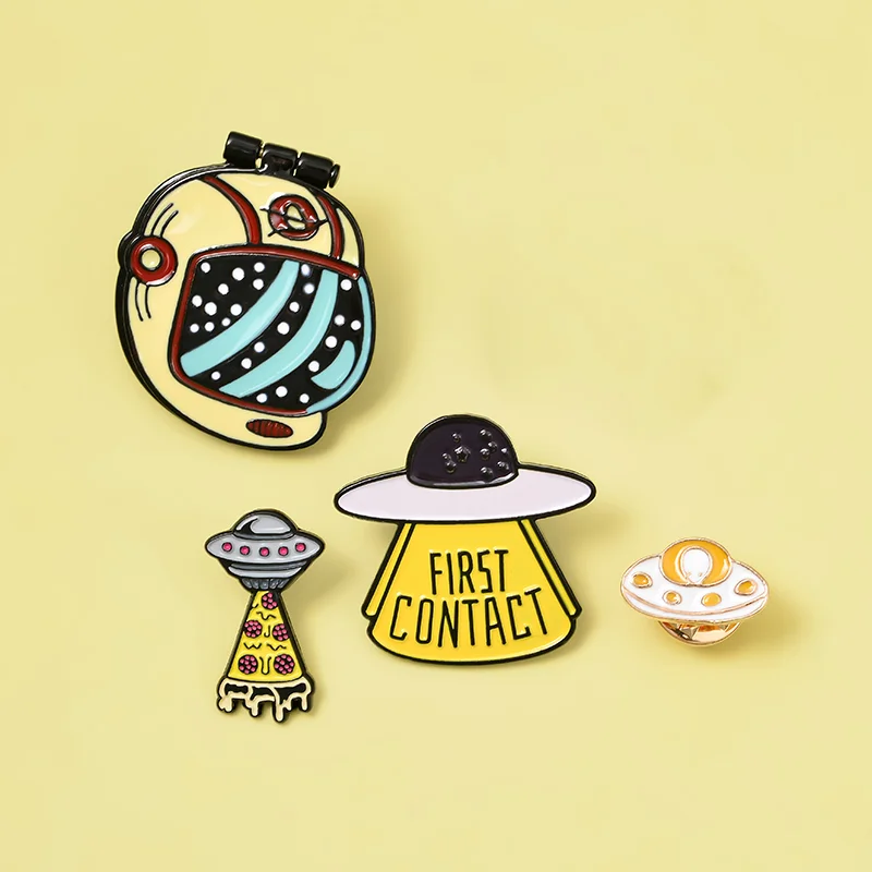 Curious Fantasy Enamel Pins Custom UFO Cat Astronaut Book Brooches Bag Clothes Lapel Space Universe Badges Kid's Jewelry