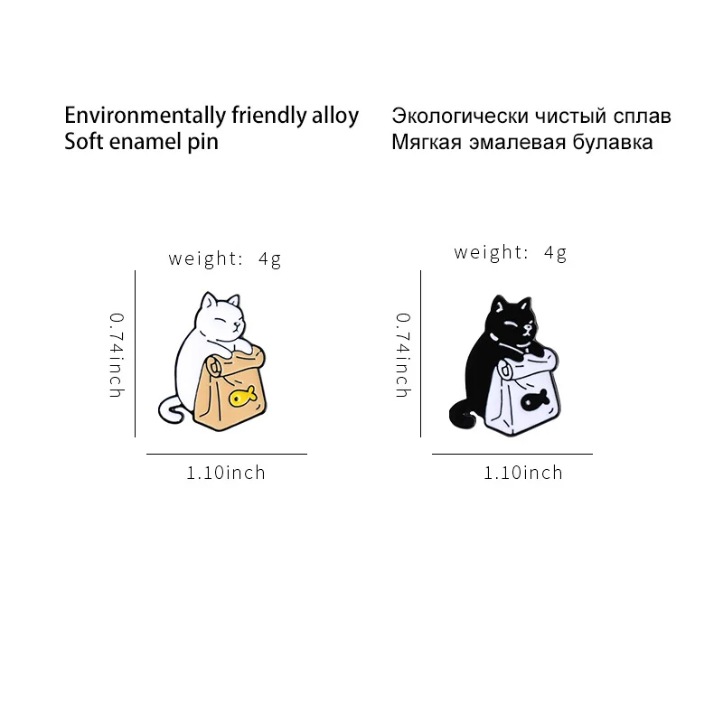 Cute black and white cat animal badge personality simple cartoon cat cat food shape alloy accessories brooch wholesale