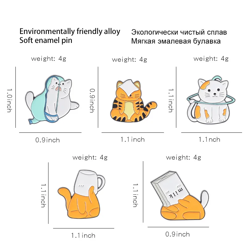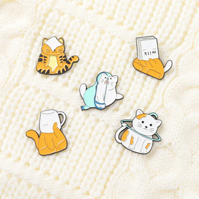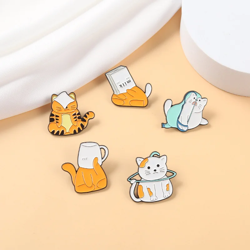 Cute Cartoon Small Animal Enamel Pin Brooch Small Tiger Metal Badge Cat Cup Carton Corsage Badge Small Jewelry Wholesale