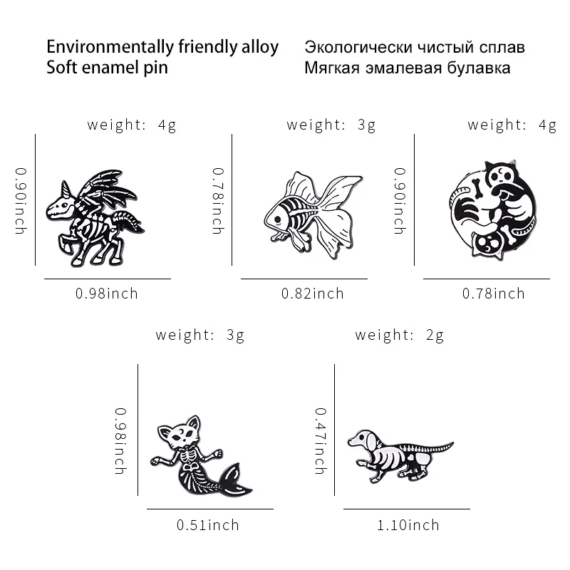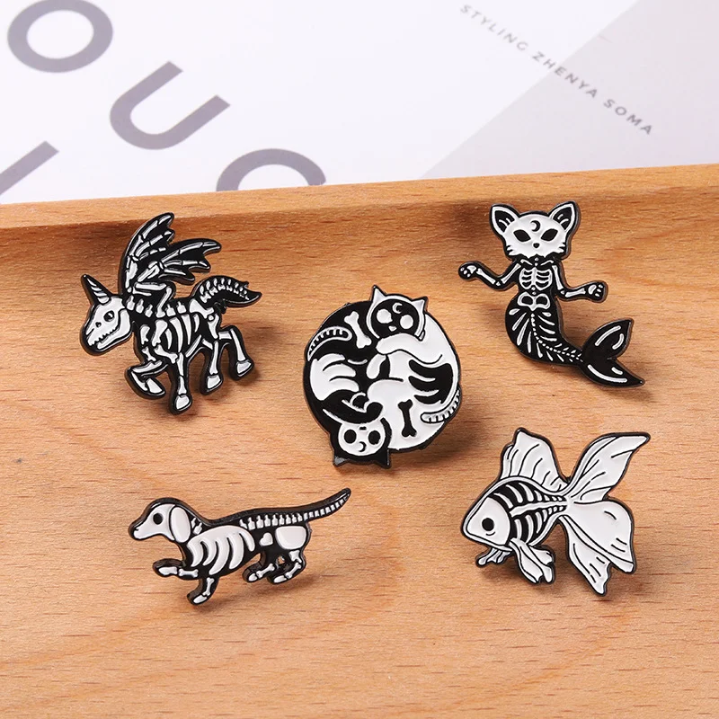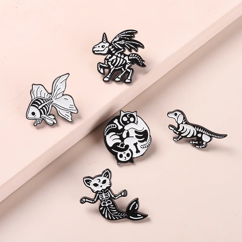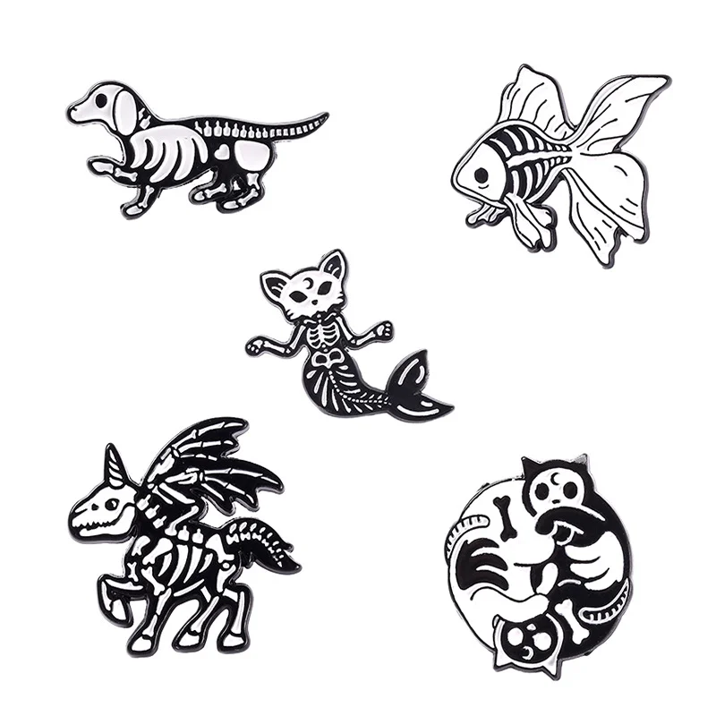 European and American Hot Selling New Halloween Kitten and Dog Skeleton Modeling Series Paint Alloy Accessories Brooch Gift Wholesale for Friends