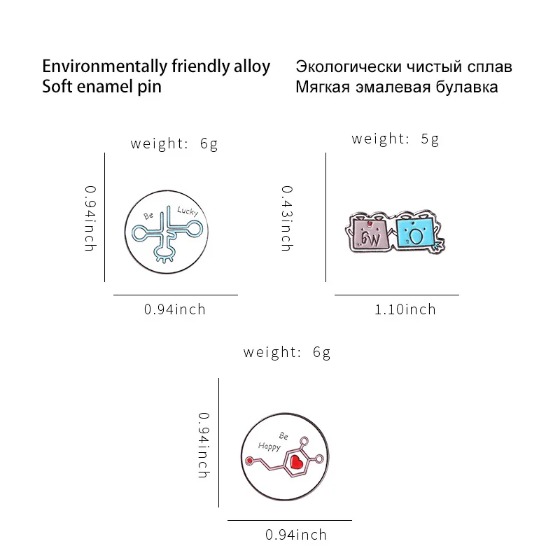 Chemical Element Gene Brooch Omg Metal Badge Be Hppy Be Lucky Badge Clothing Accessories Corsage Waist Pin