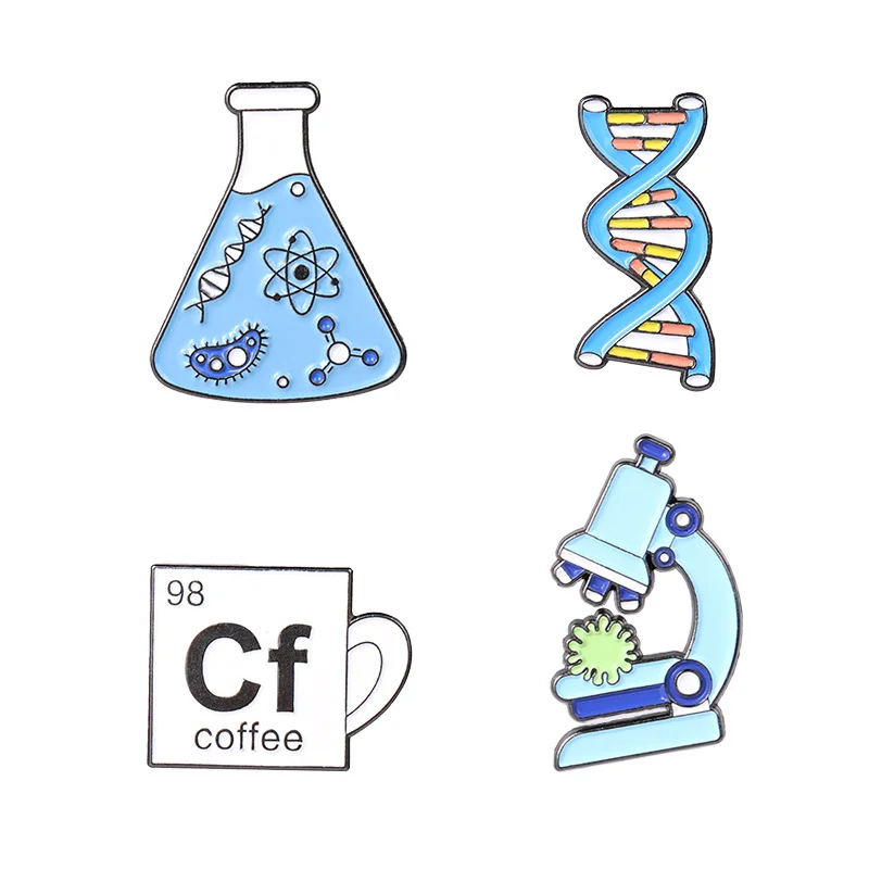 Hot-selling Gene Chain Chemical Medical Brooch Experimental Bottle Cf Microscope Badge Metal Badge Jewelry