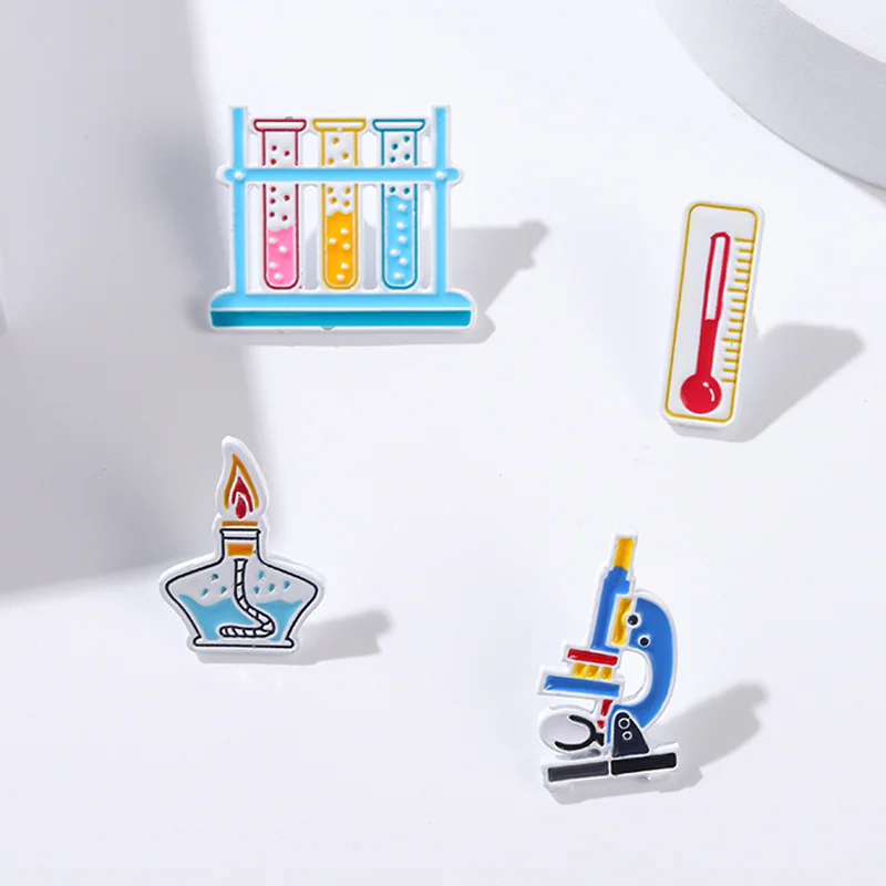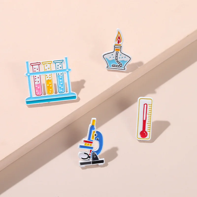 Laboratory Utensils Microscope Thermometer Test Tube Alcohol Bottle Metal Badge Teaching Props Enamel Pin Pin Wholesale