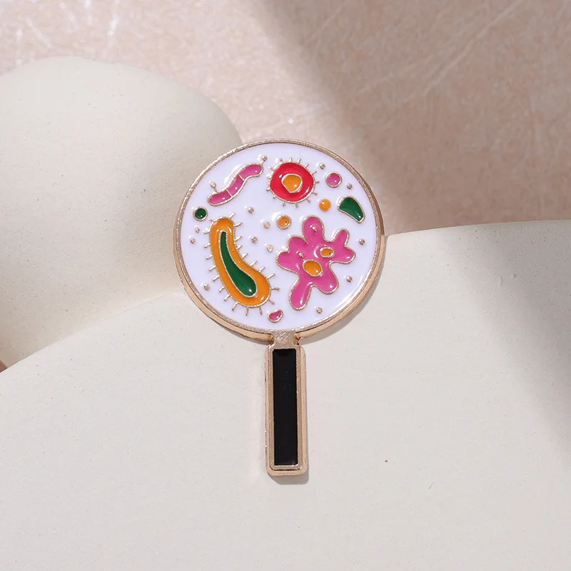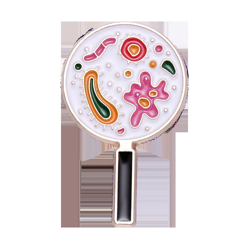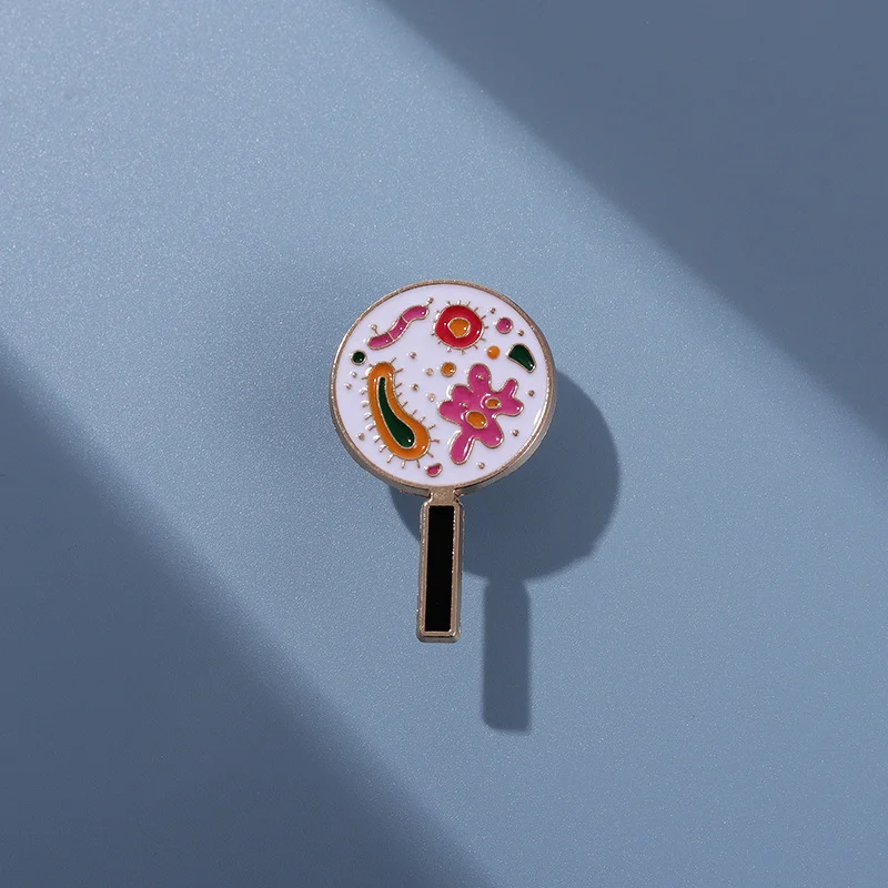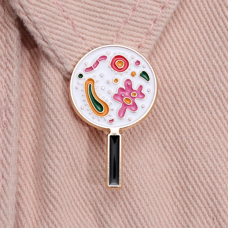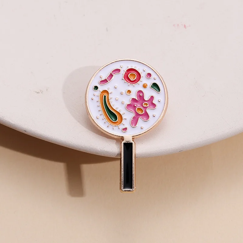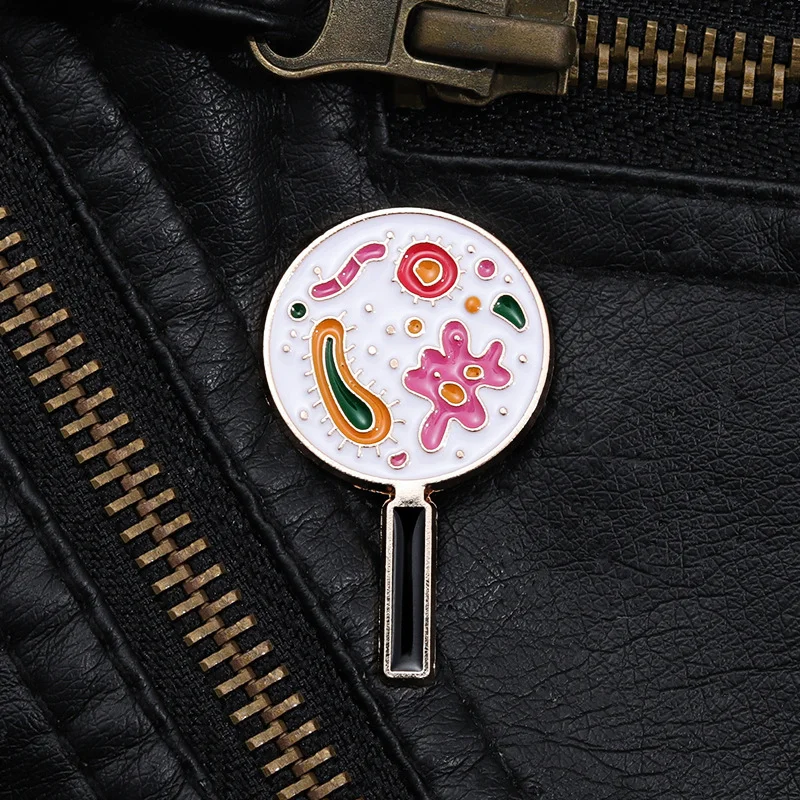 Science Biological Experiment Magnifying Glass Microscope Cell Nucleus Bacteria Creative Metal Enamel Brooch Collar Pin Clothing Decoration Accessories