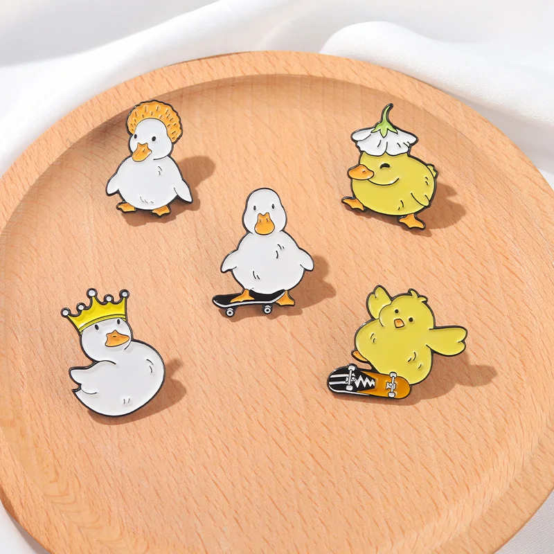 Cute Little Yellow Duck Brooch Metal Badge White Duck Crown Animal Brooch Enamel Pin Light Luxury Trinket Wholesale