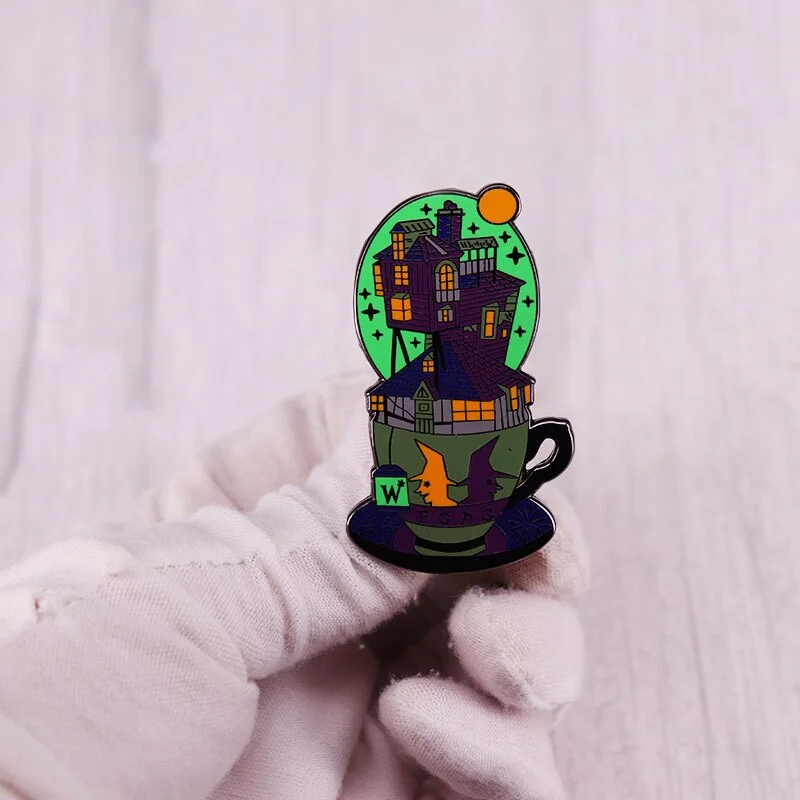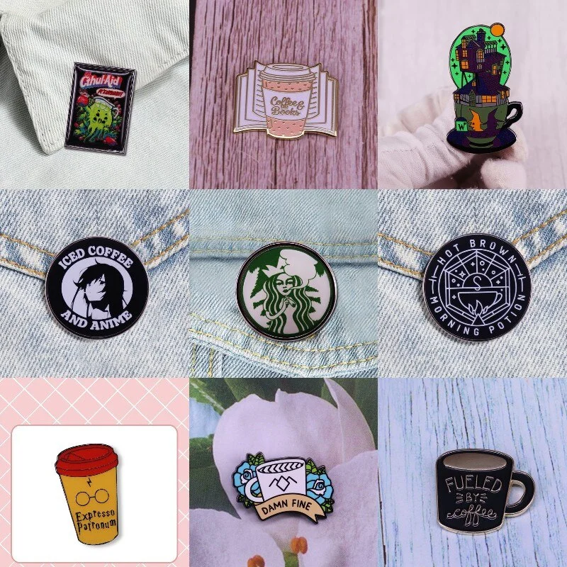 Classic Coffree Cup Enamel Pins Book Flower House Cartoon Brooches Backpack Hat Lapel Badges Wholesale