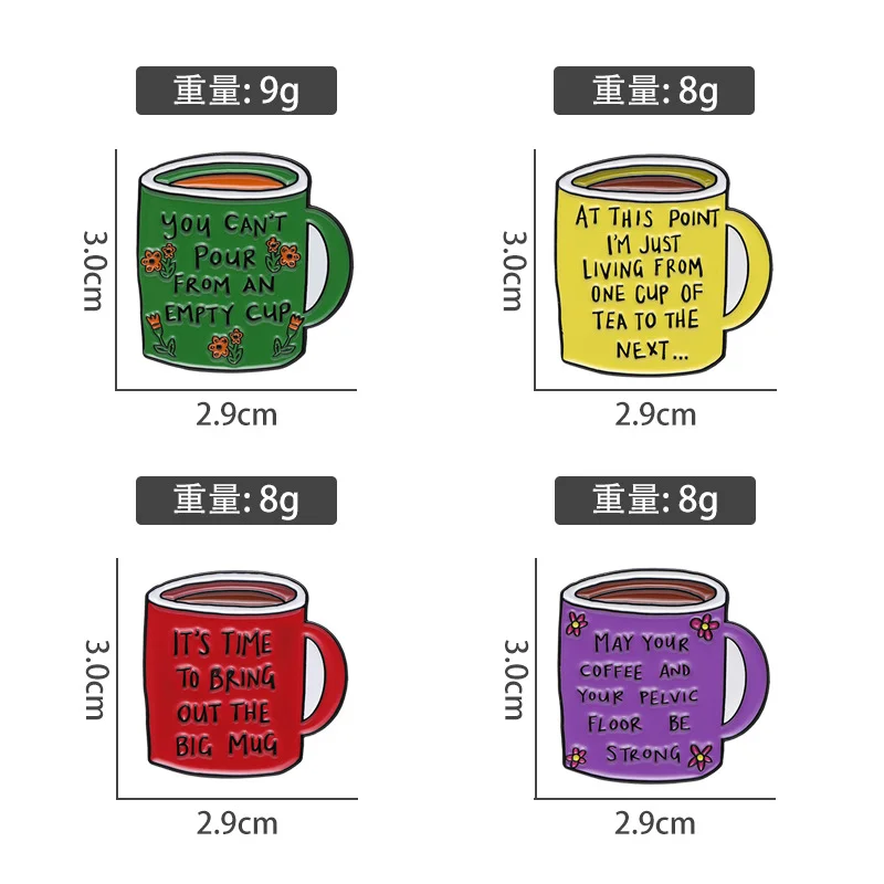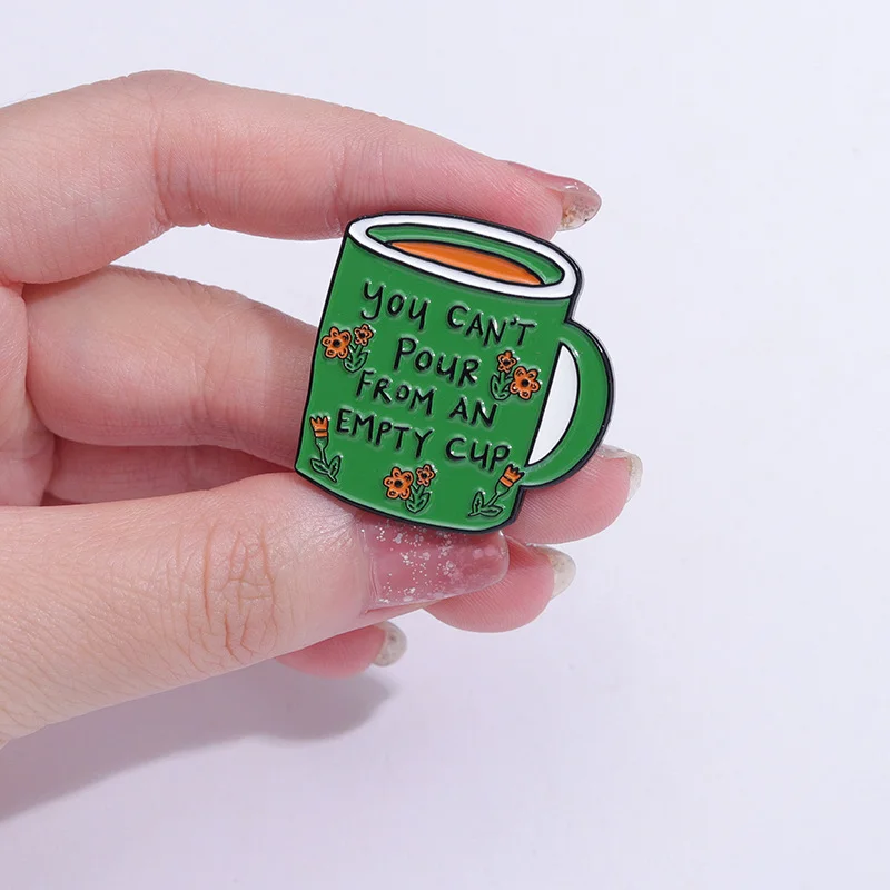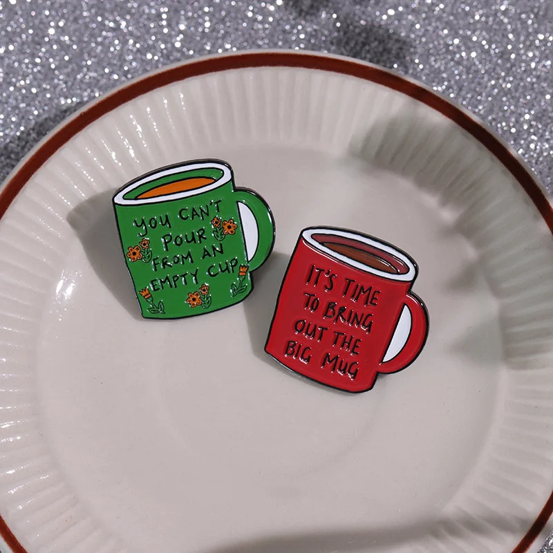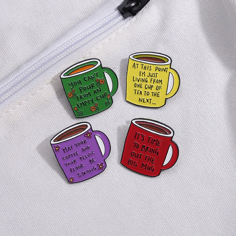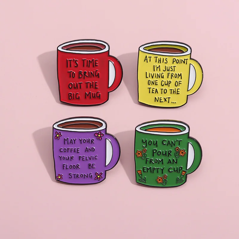 Coffee Cup Enamel Brooch, Medal Button, Clothing Accessories, Bag Pin, English Inspirational Sentence