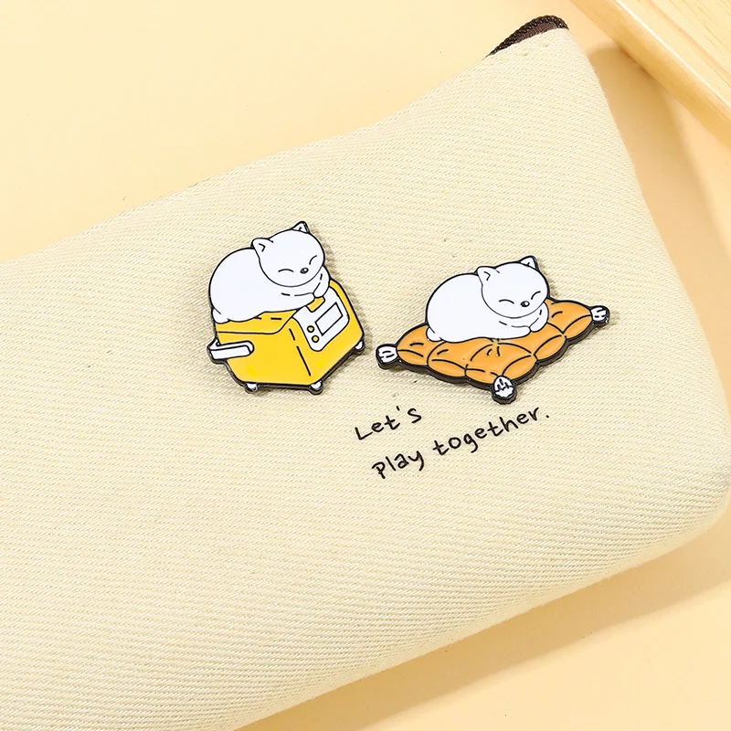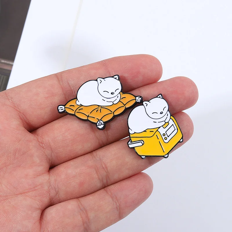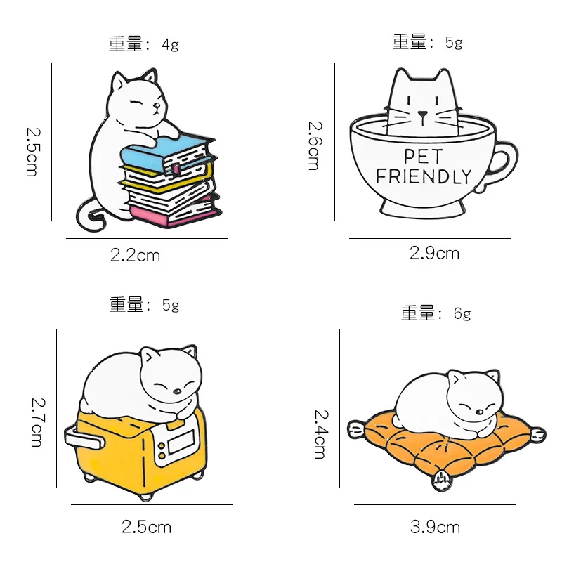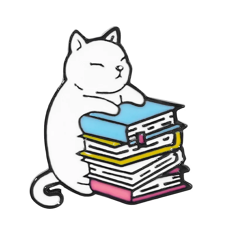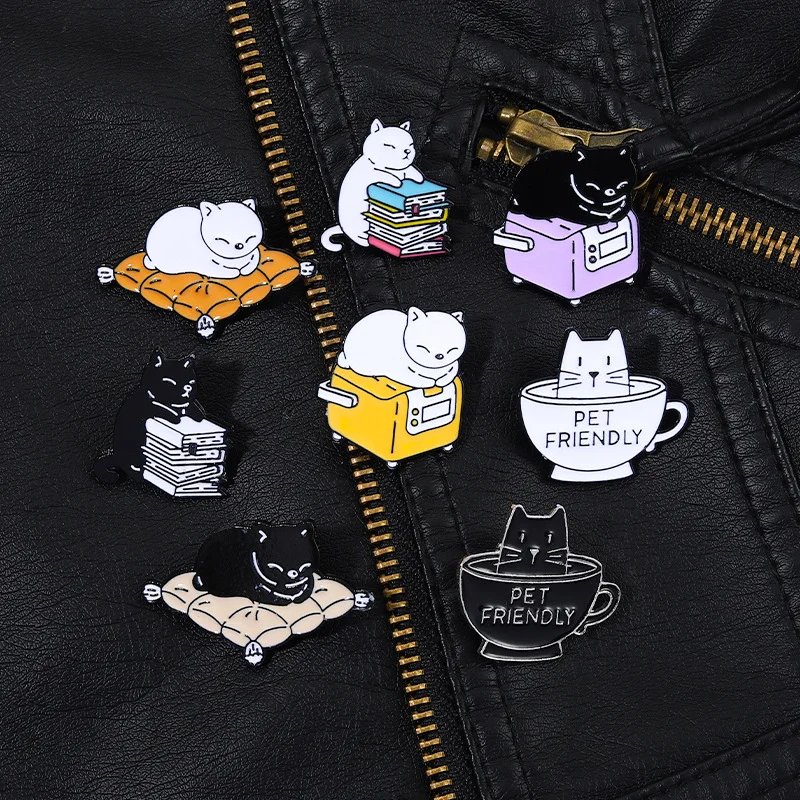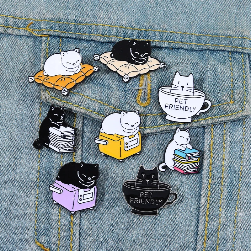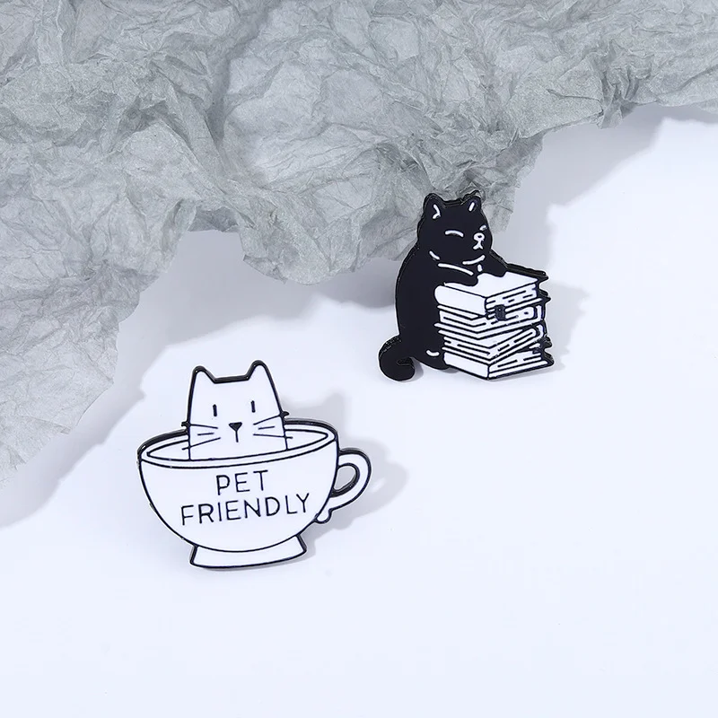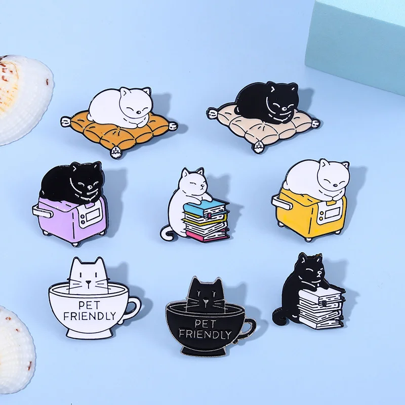 Creative Cartoon Cat Brooch Reading Book Drinking Coffee Cute Personality All Kinds of Accessories Clothes Bags Animal Pin Badges