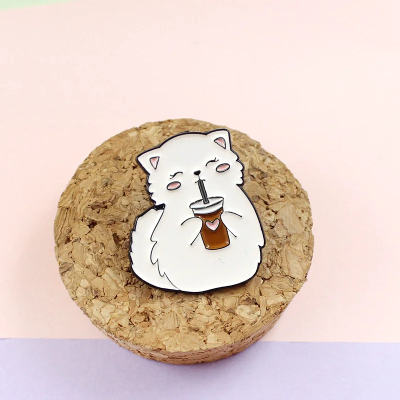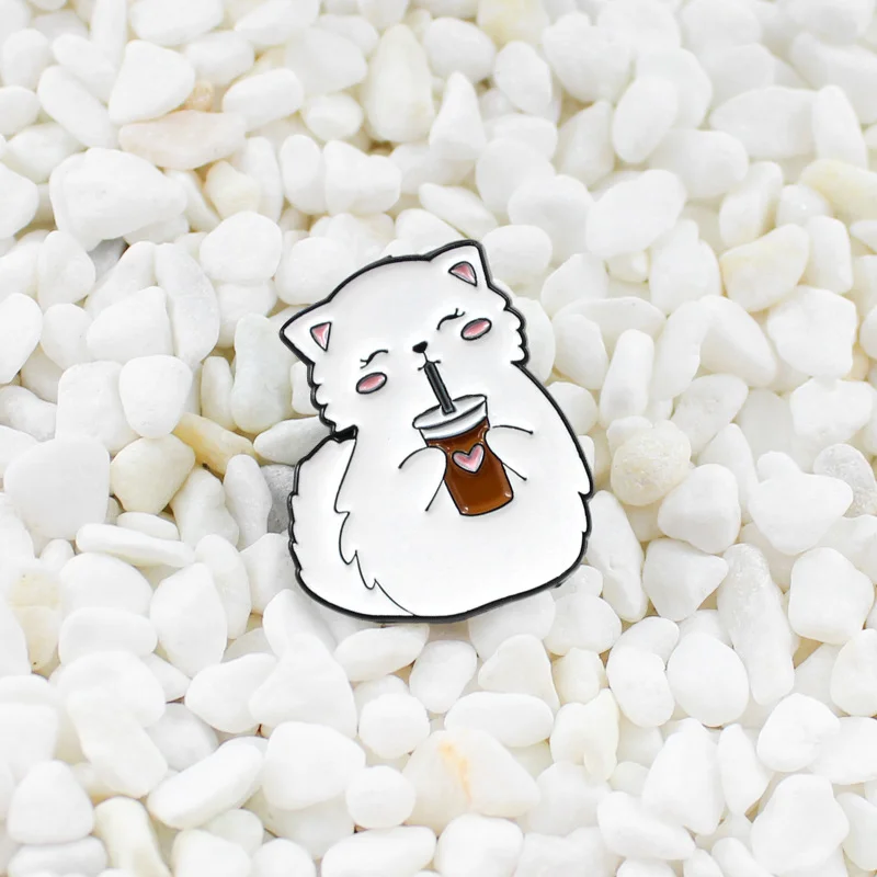Naughty Cat Smiling Drink Love Coke Cartoon Fashion Drop Oil Brooch Clothing Jewelry