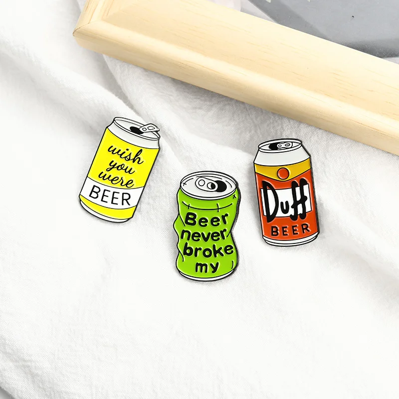 New Creative Foreign Trade Cartoon Jewelry Brooch Cartoon Creative Personality Letter Drink Pull Can Shape Beer Bottle