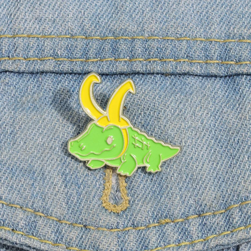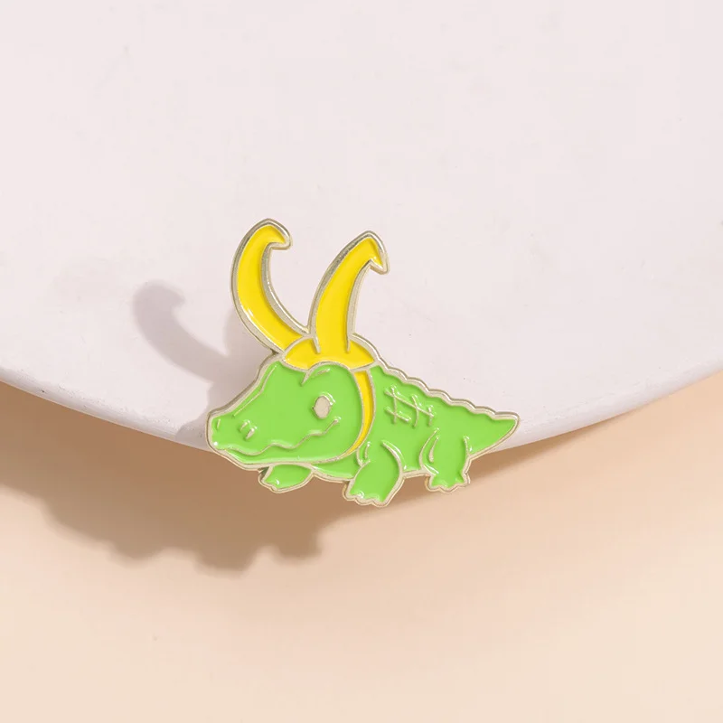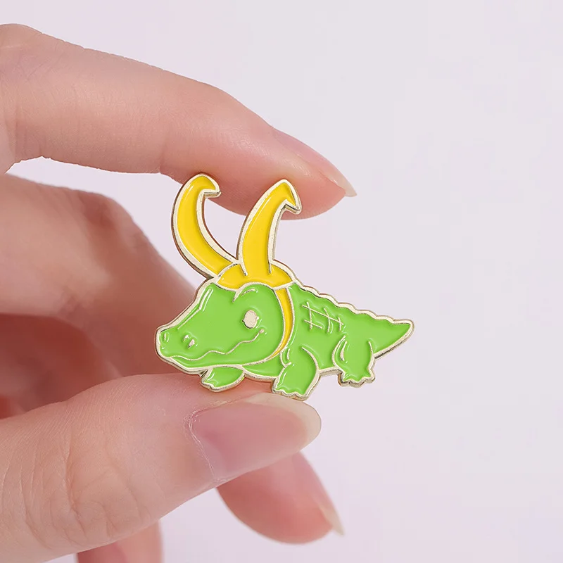Green Animal Enamel Pin Brooch Cartoon Dinosaur Triceratops Original Animal Crocodile Metal Badge Clothing Accessories Factory Wholesale