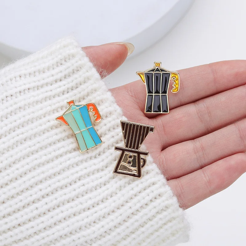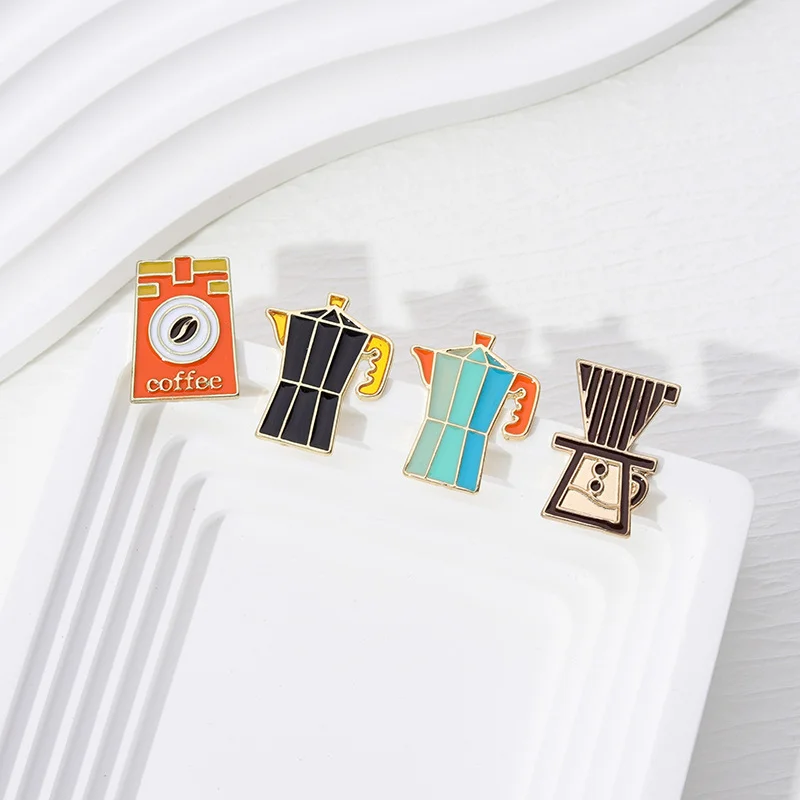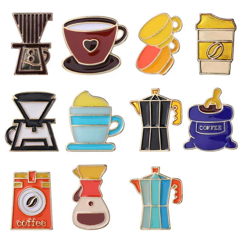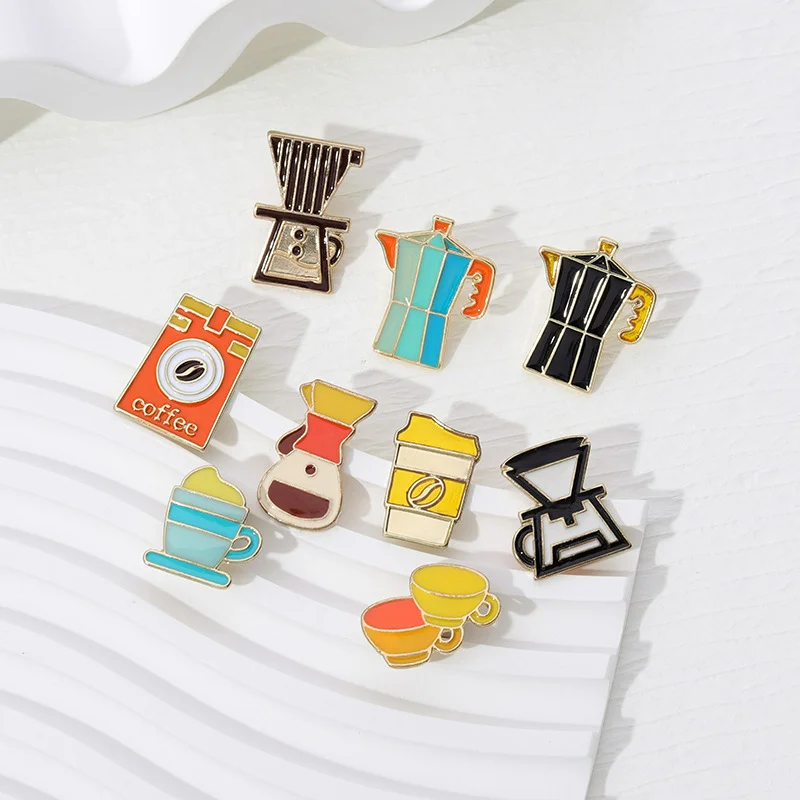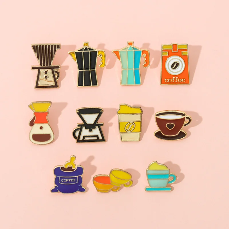 Retro Americano Coffee Cup Pour Over Coffee Moka Pot Enamel Brooch Brooch Coffee Machine Coffee Cup Souvenir Badge Gift Metal Corsage Cartoon