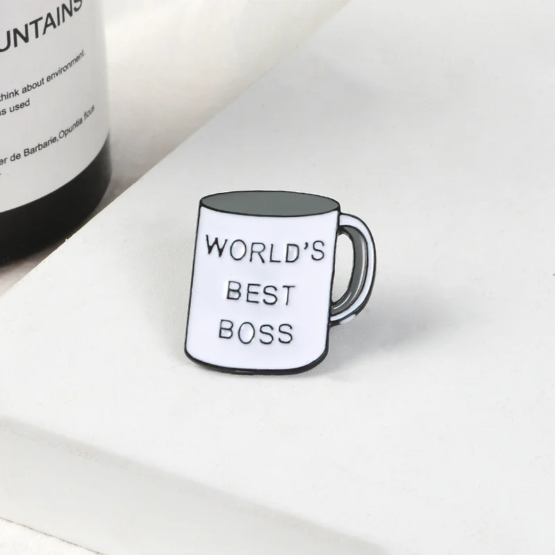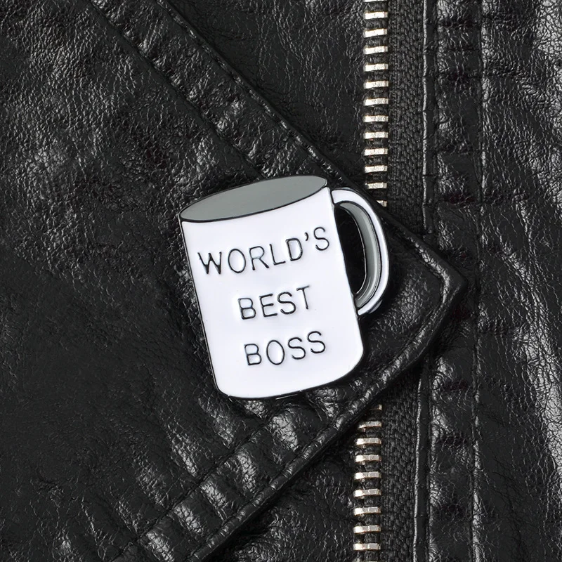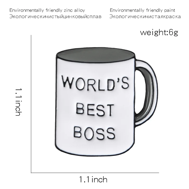 World's Best Boss Mug Brooch Office Coffee Cup Enamel Pin Daily Supplies Pins Badge for Women Men Boss Gift Lapel Pin Jewelry