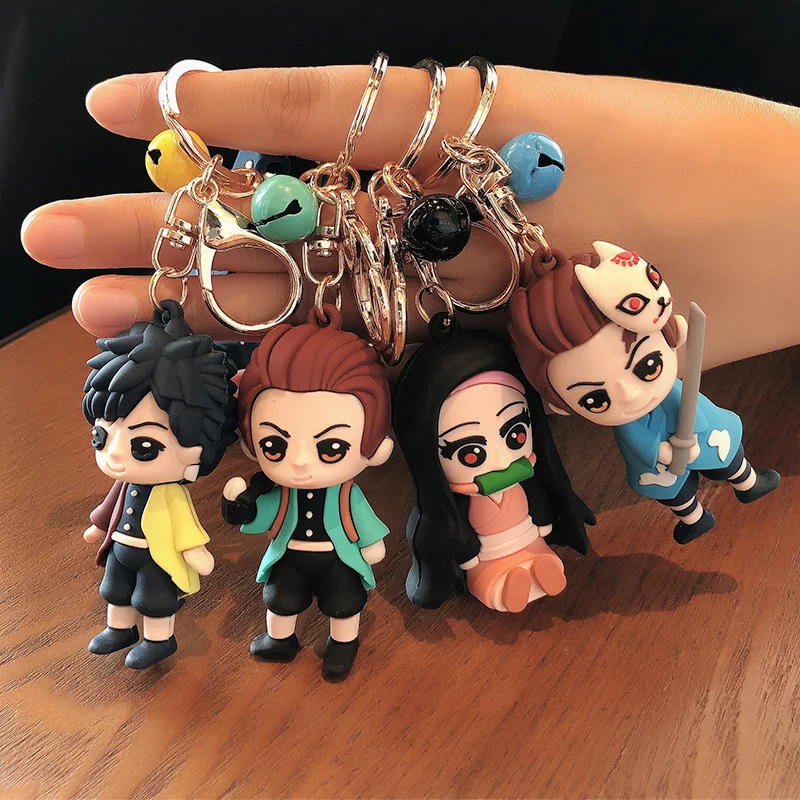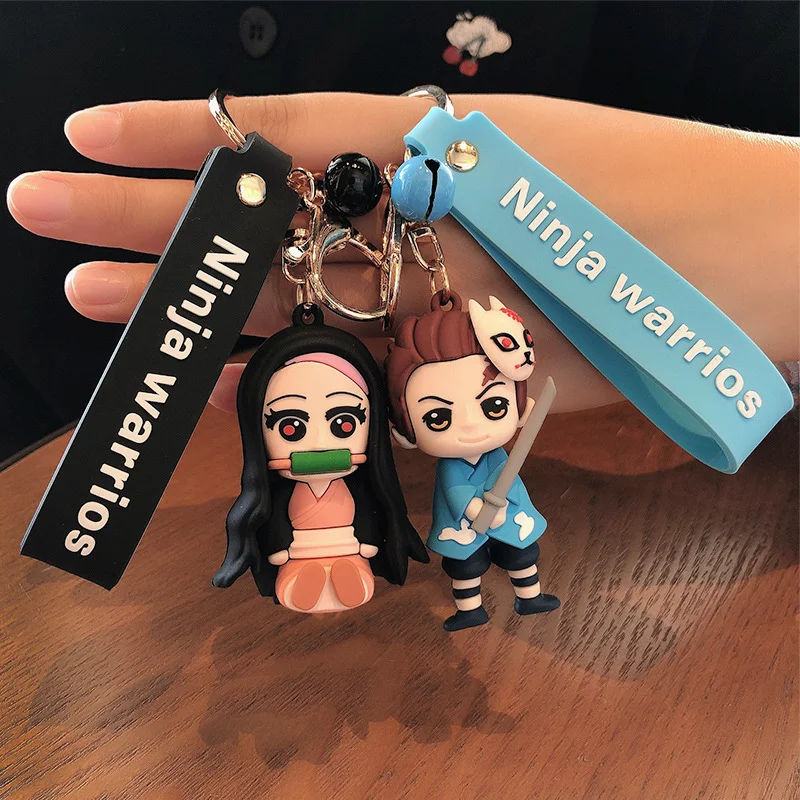 Anime Demon Slayer Keychain Brinco Blade of Ghost Key Chains Choker Kamado Same Jewelry Fans Brelok Badge Pin Gift