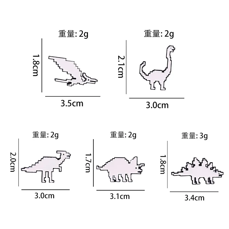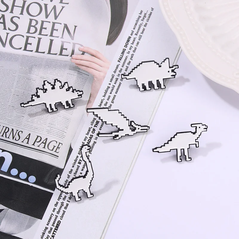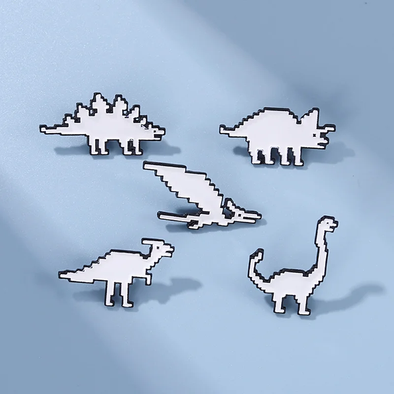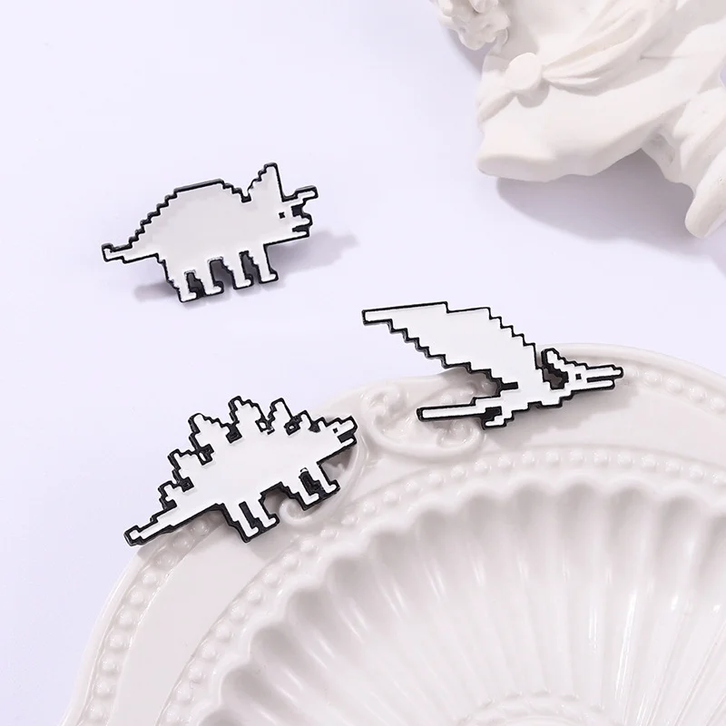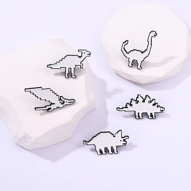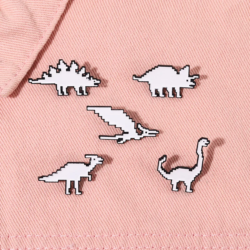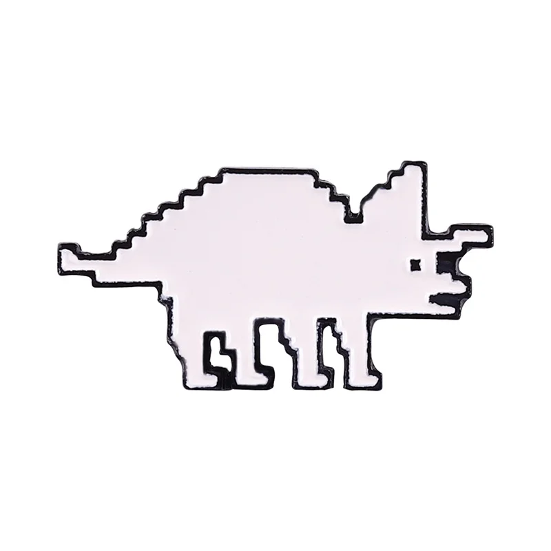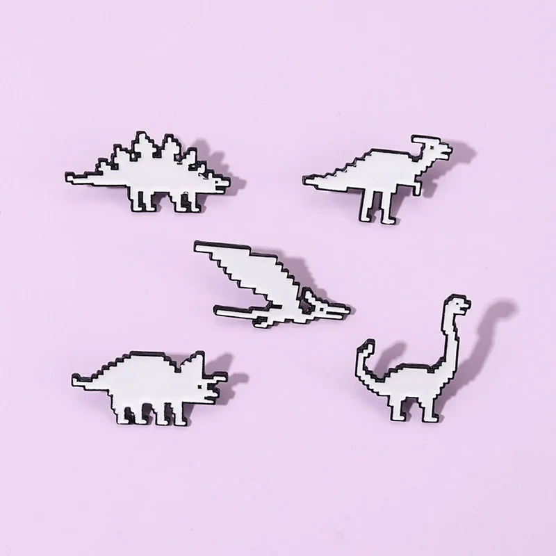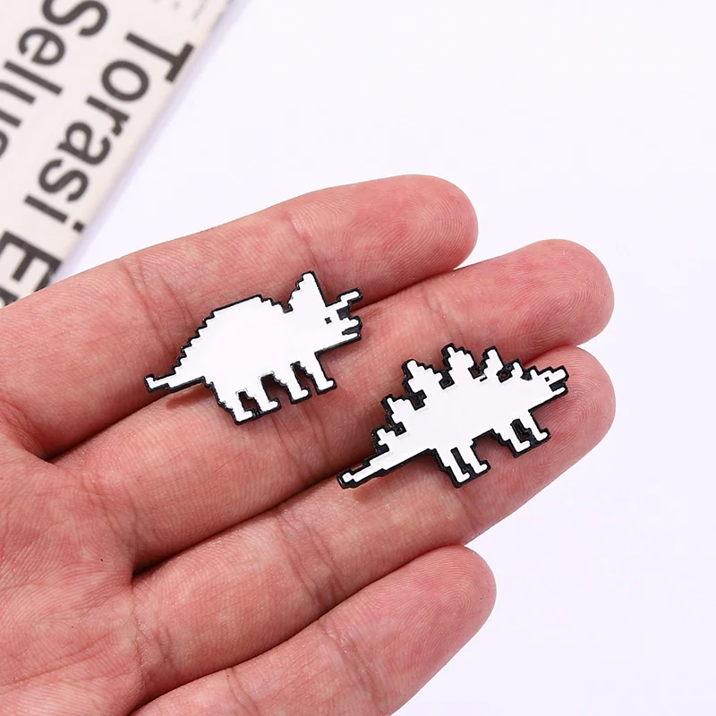 Cartoon Pixel White Small Dinosaur Animal Design Creative Personality Wild Bag Clothing Metal Badge