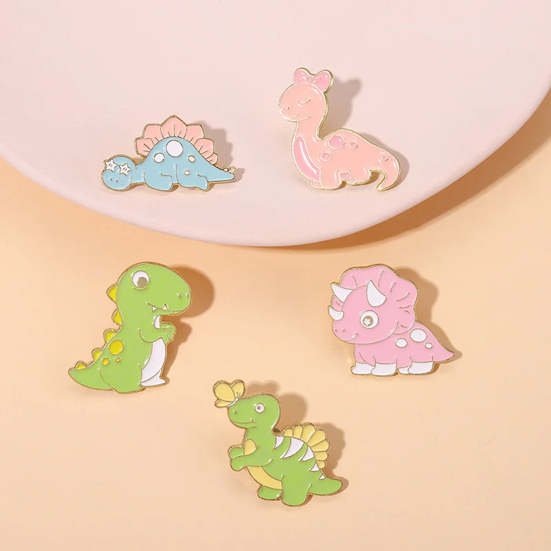 Dinosaur Series Brooch Cartoon Color Small Tyrannosaurus Rex Shape Animal Badge Factory Wholesale