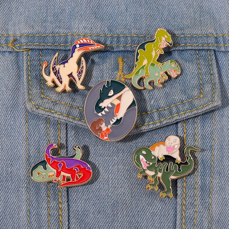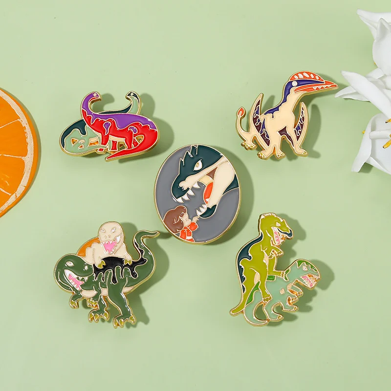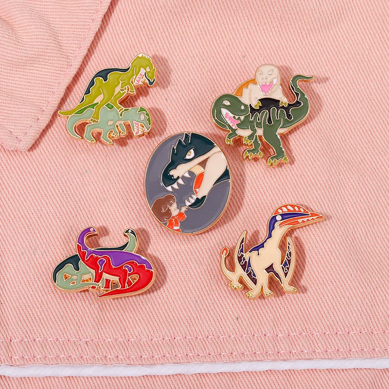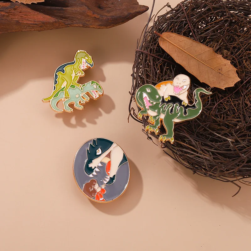 Retro Little Dinosaur Tyrannosaurus Rex Playing Brooch Animal Simple Fashion Clothing Bag Jewelry Badge Accessories