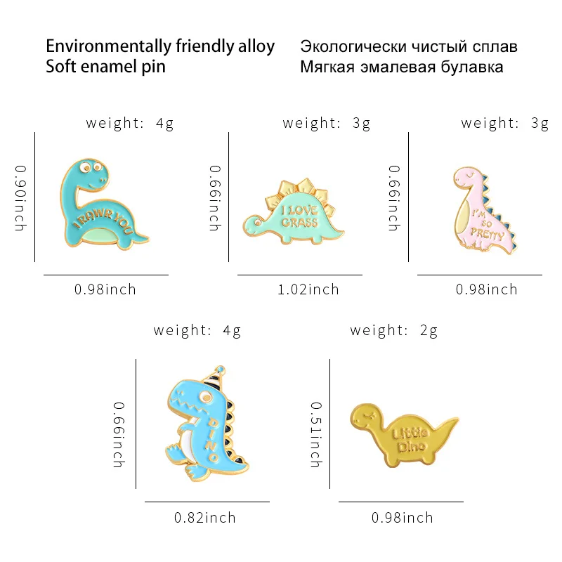 Small Dinosaur Animal Metal Enamel Pins Brooches Clothing Accessories Jewelry Corsages Badges Lapel Pins Collar Pins Wholesale