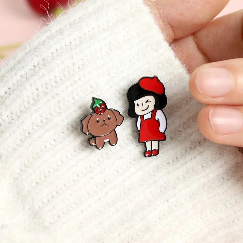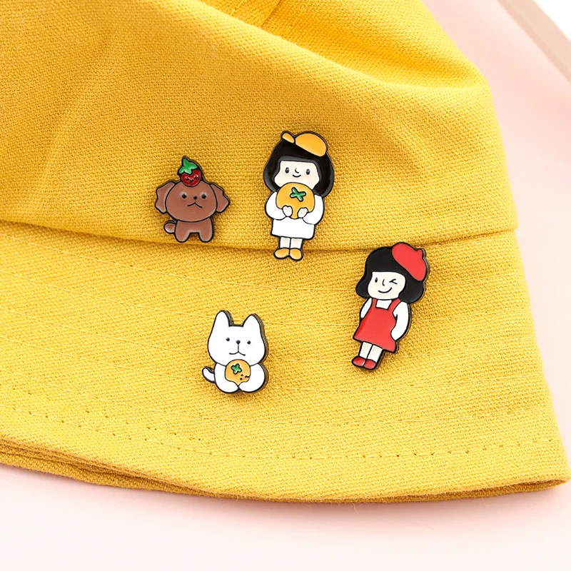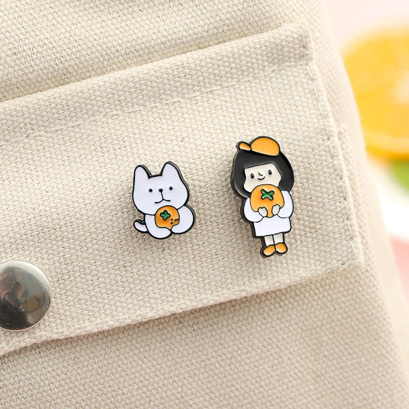 Cartoon and Fresh Design, Ten Weeks of The Same Orange Girl Brooch, Cute Puppy Wild Brooch, Accessory Badge All-match