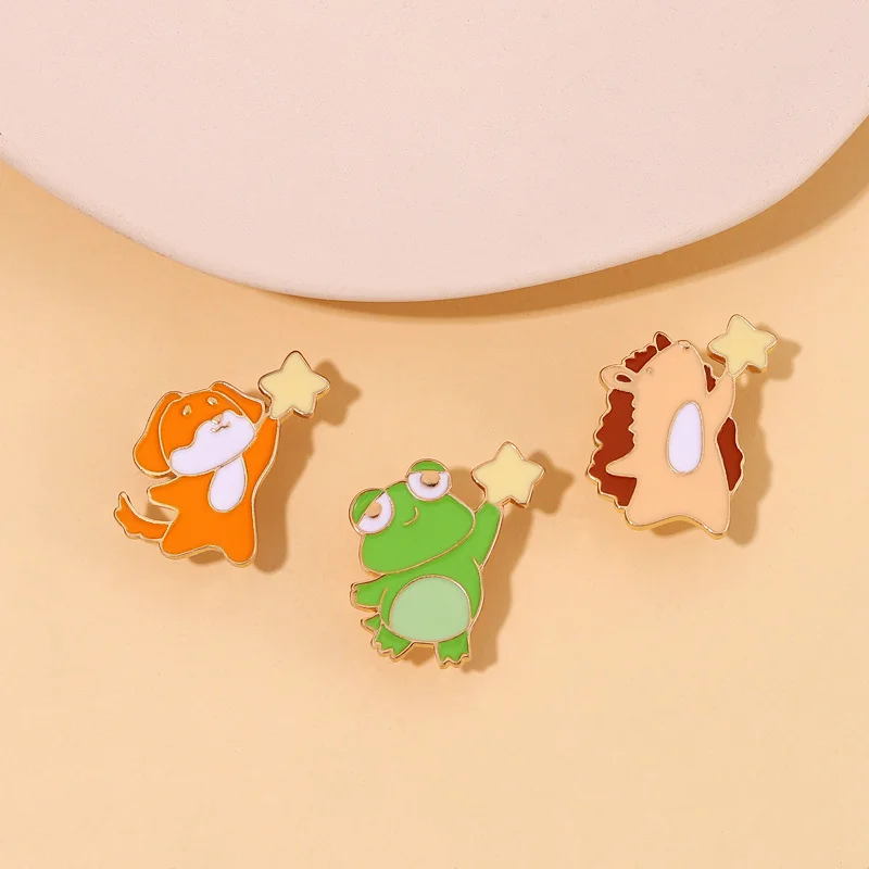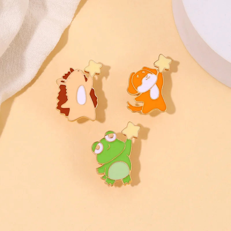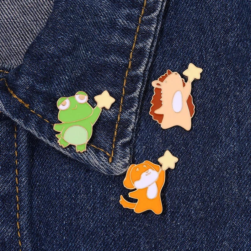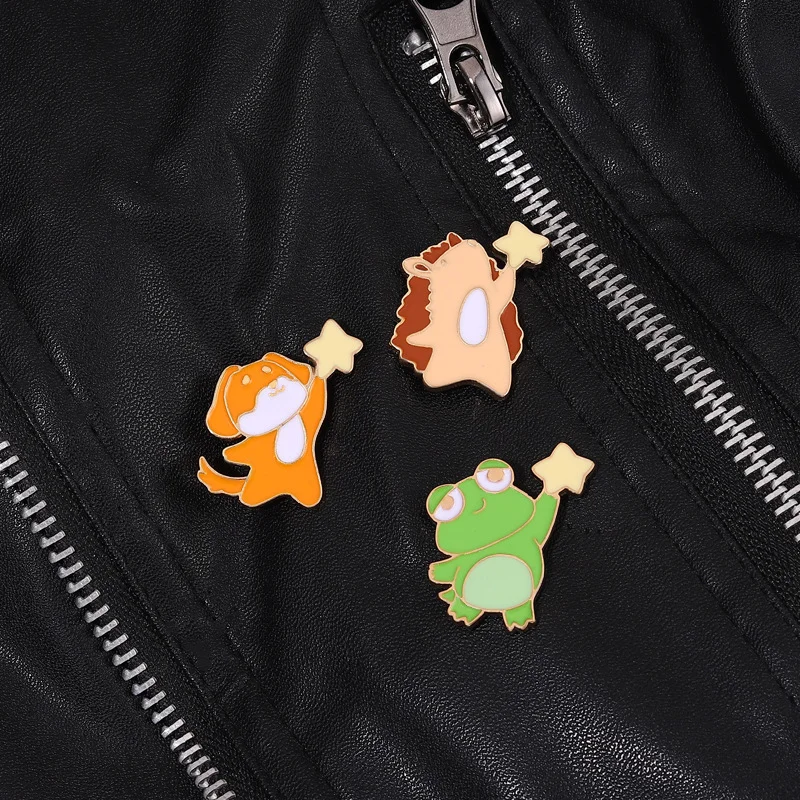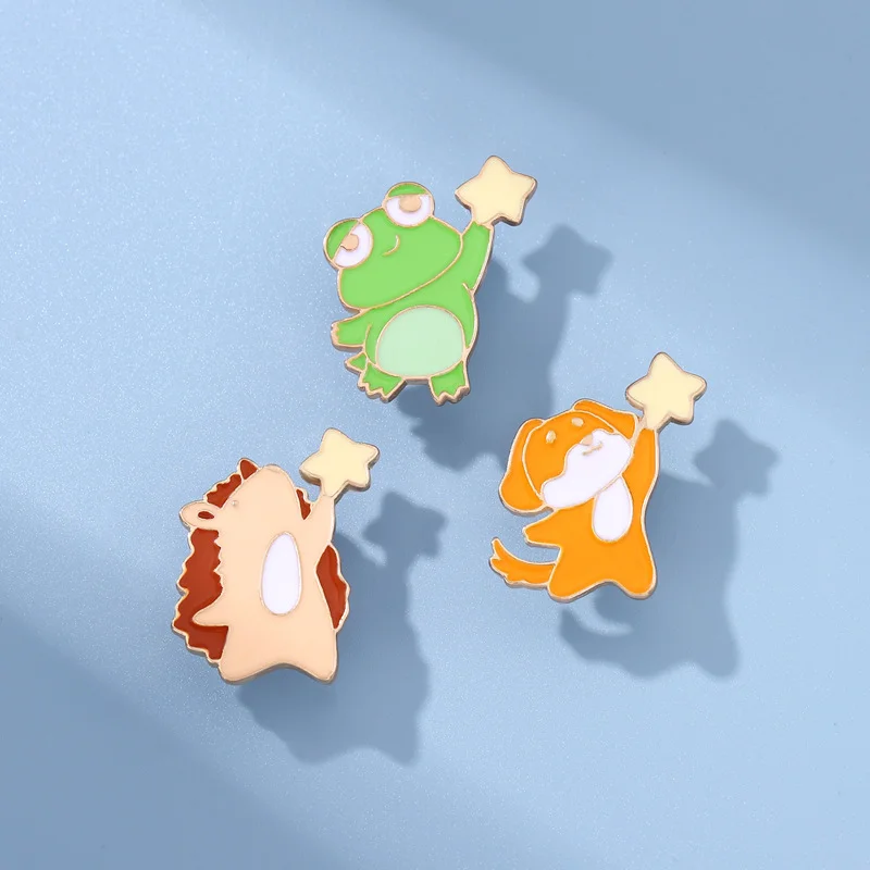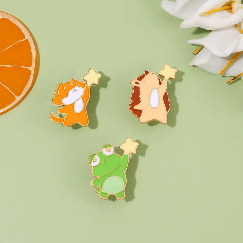 Star-picking Small Animal Brooch Hedgehog Girl Bag Accessories Frog Dog Medal Corsage Skirt Collar Pin