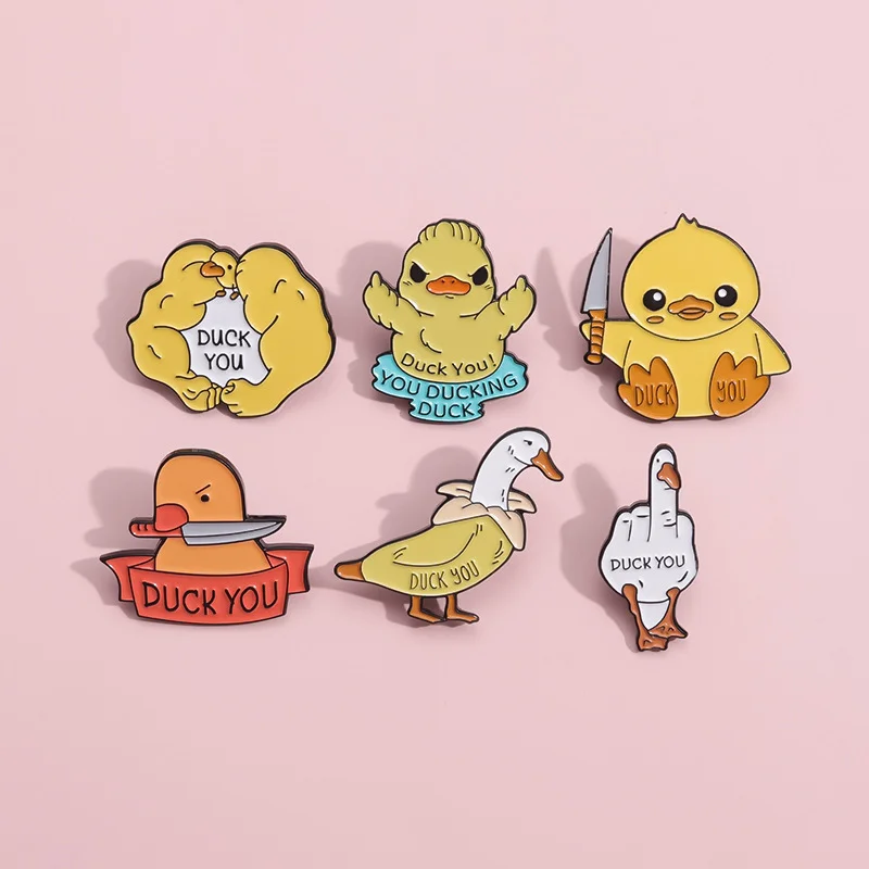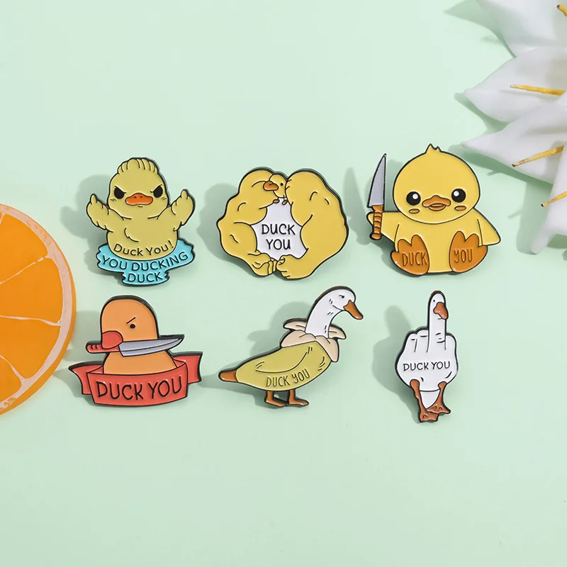 Cartoon Enamel Brooch, Cute Little Yellow Duck with Knife, Goose Shaped Brooch, Creative DUCK YOU Personalized Animal Accessories Badge