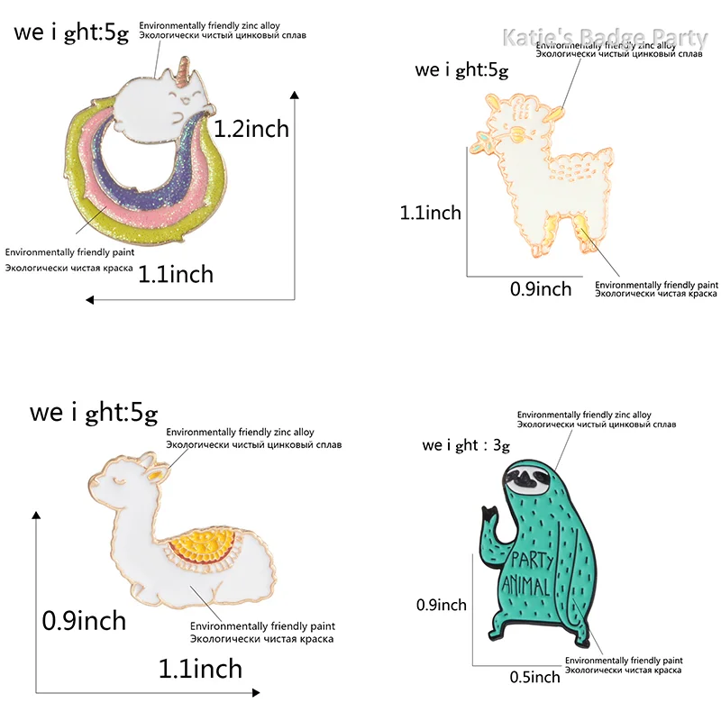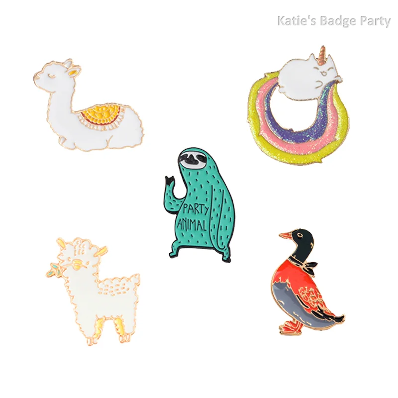 Cute Funny Animals Enamel Pin Llama Duck Sloth Sheep Badge Brooch Lapel Denim Jeans Shirt Bag Cartoon Jewelry Gift for Kids