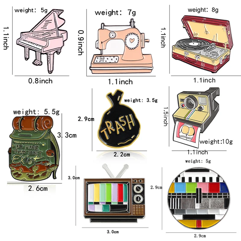 Brooch Piano Sewing Machine Cokey Dog Skate Lamian Noodle Music Box Trash Camera Travelling Backpack Television TV Enamel Pins