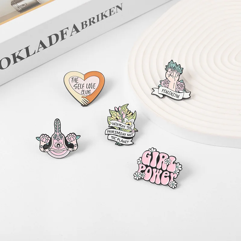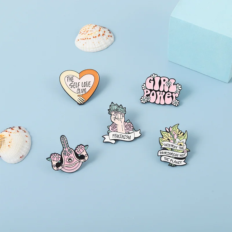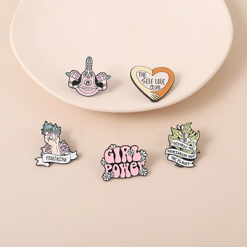 Enamel Pin English Brooch Women's Womb Care Feminist Freedom Love Metal Badge Uterine Fist Pin Wholesale Accessories