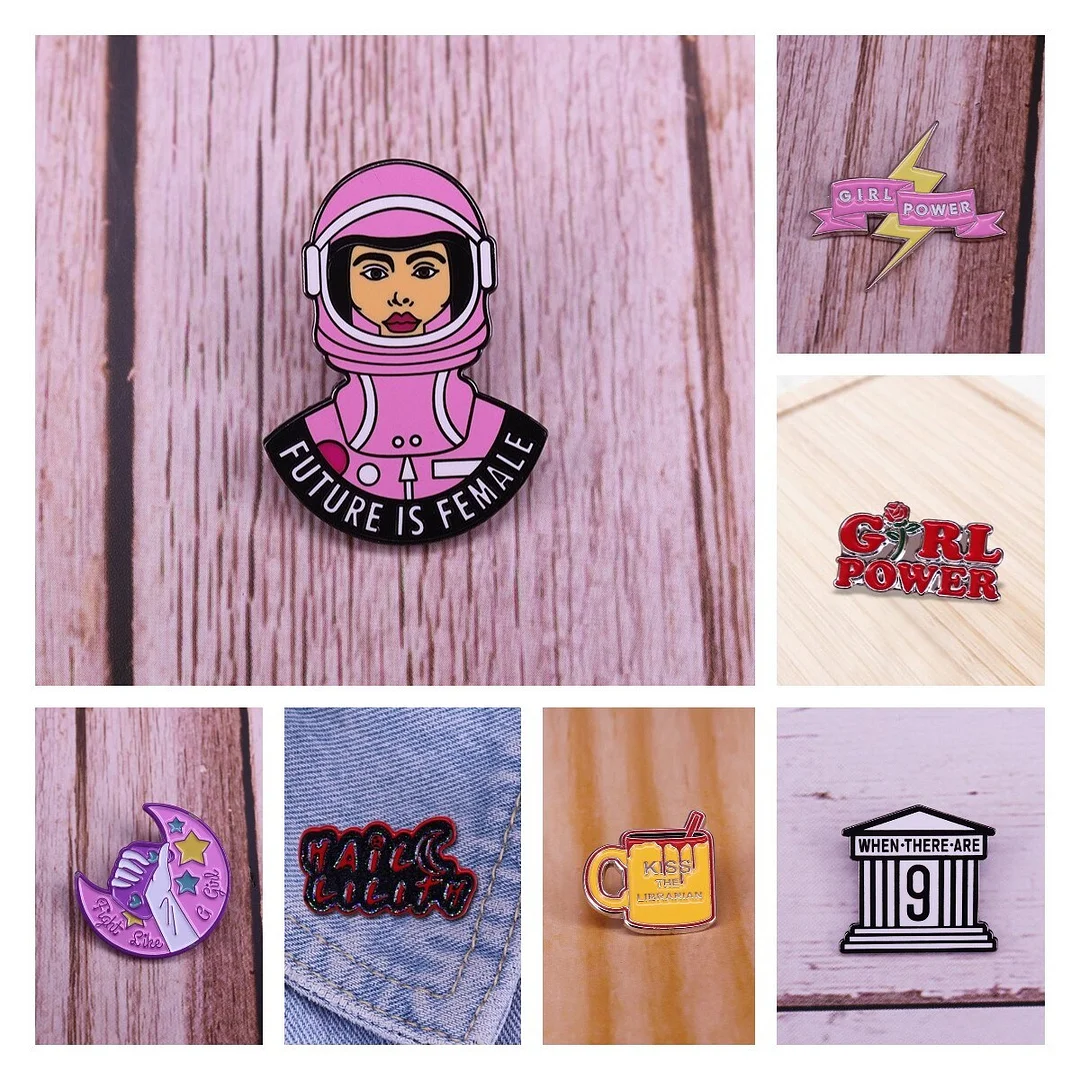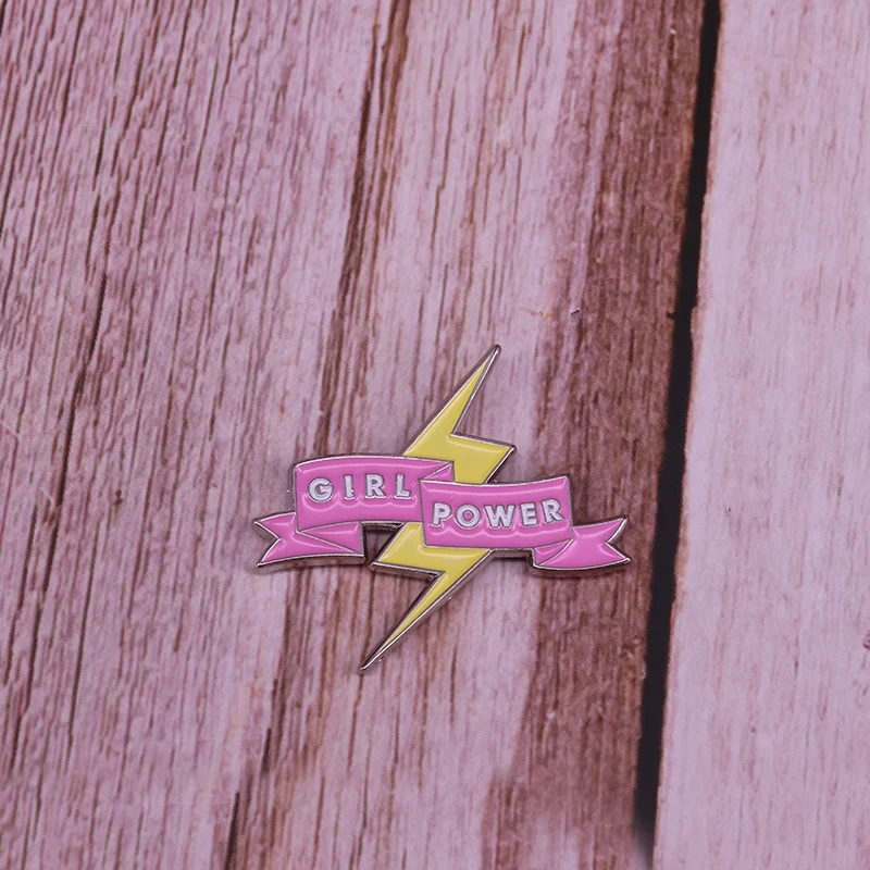 Feminist Enamel Lapel Pin Brooch Lightning Positive Female Empowerment GRL PWR Badge Gift for Women Wholesale