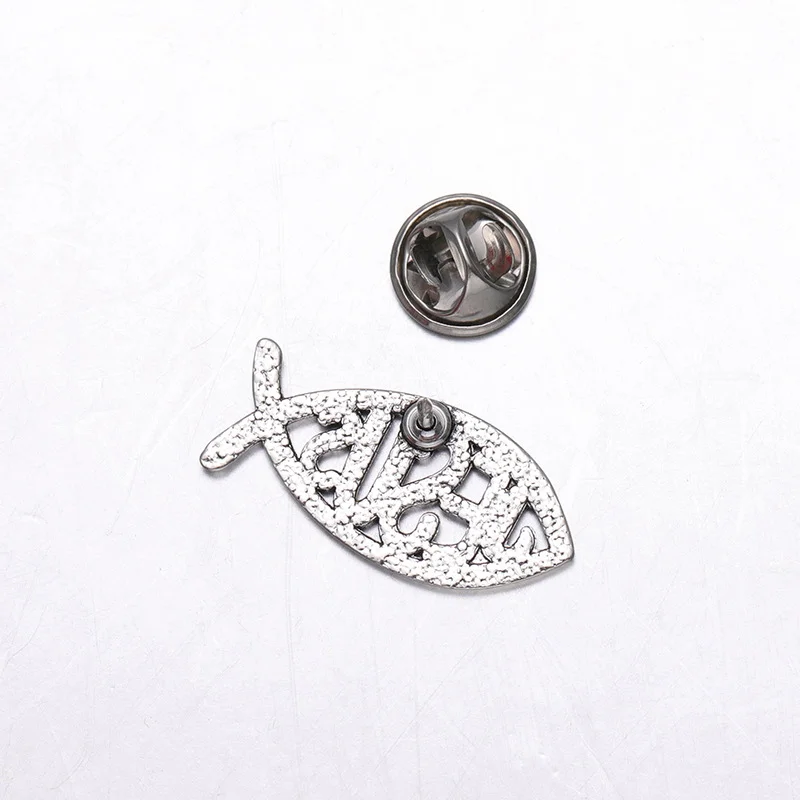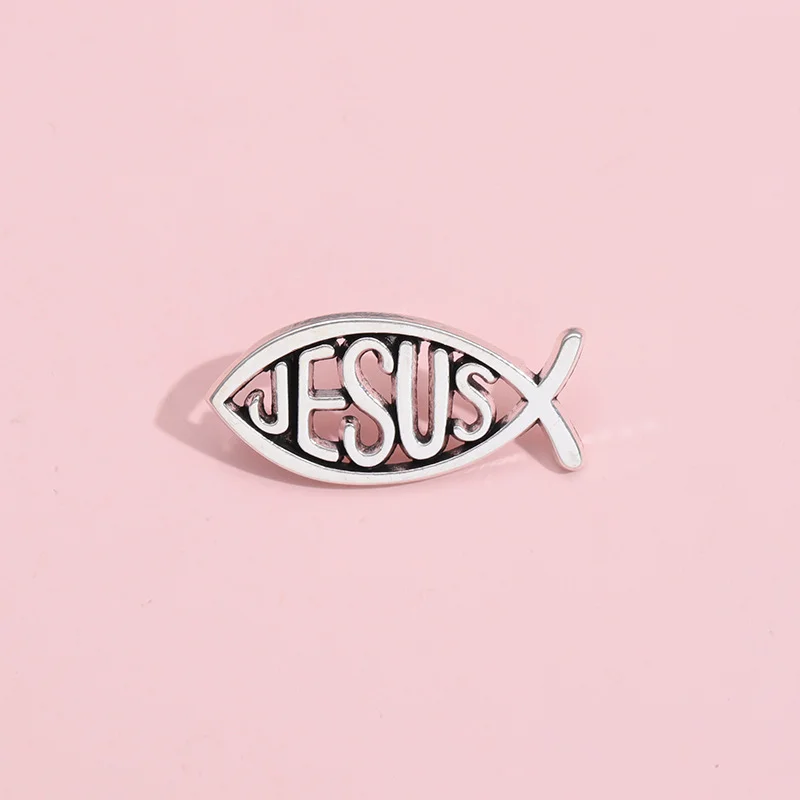 JESUS Christianity Brooch Jewelry Silver Fish Uniform Lapel Pin Animal Clothing Accessories Logo Metal Badge Wholesale