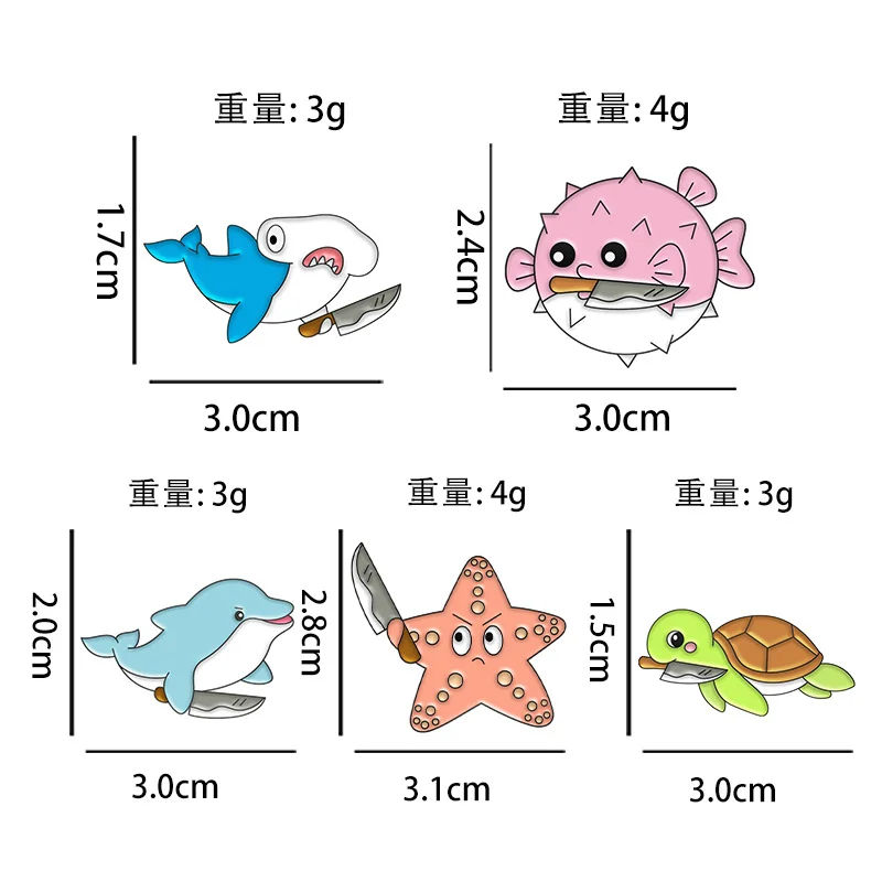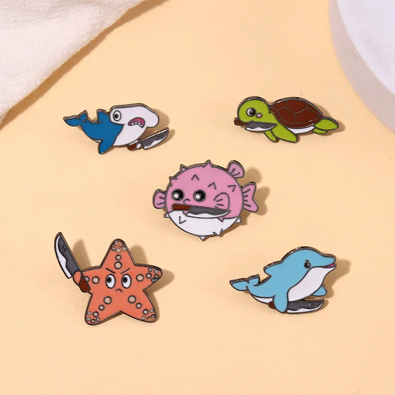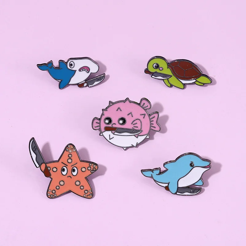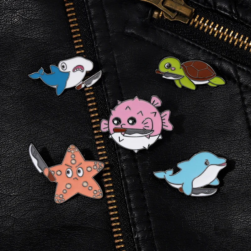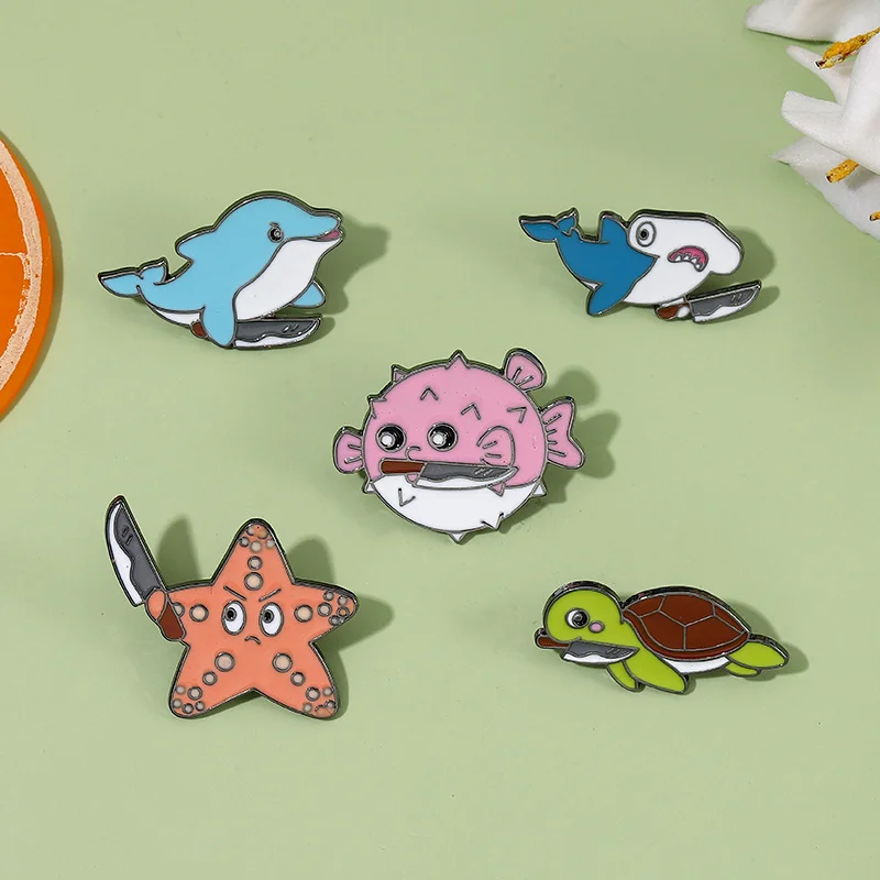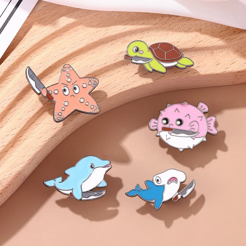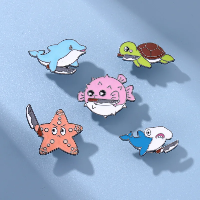 Marine Animals Take A Knife To Protect The Marine Environment Enamel Pin Badge Dolphin Enamel Pin Starfish/puffer Fish/turtle/whale/shark Shape Animal Protection Badge