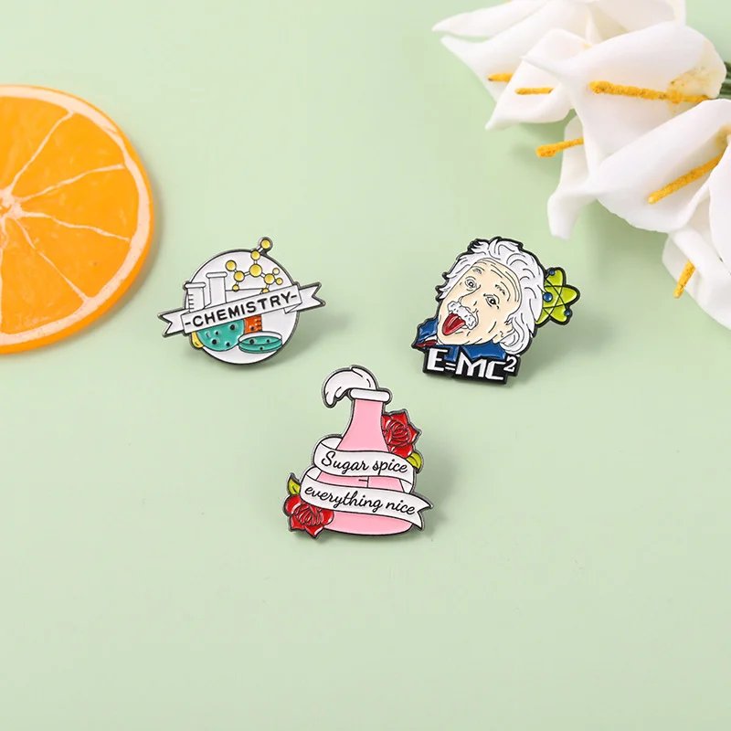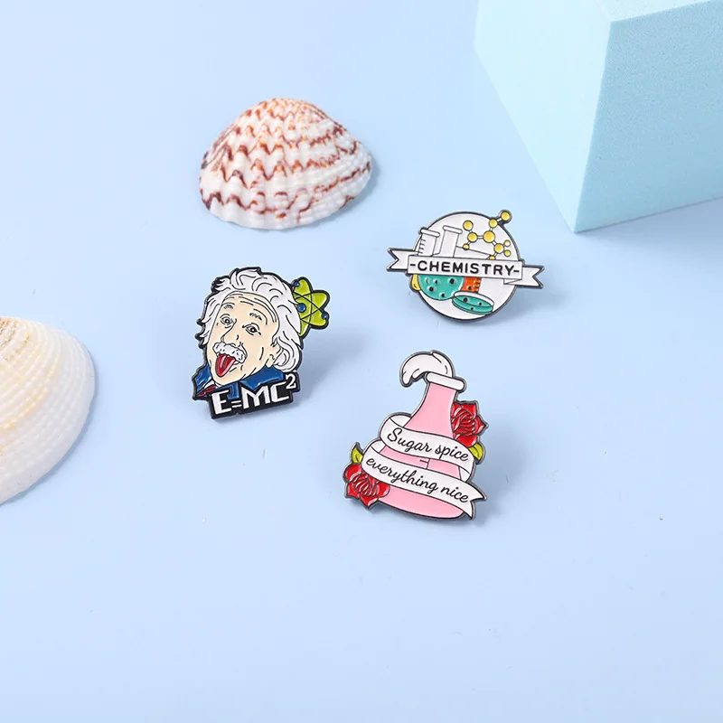 Einstein Brooch Celebrity Badge Experimental Bottle Academic Mystery Metal Badge Brooch Silk Scarf Buckle Pin