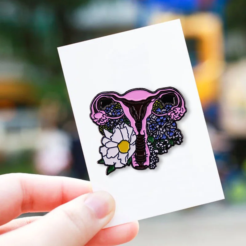 High-quality Copper Human Organ Uterus and Beautiful Flowers Mix and Match Enamel Brooch Wholesale