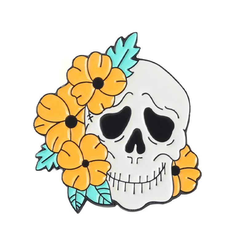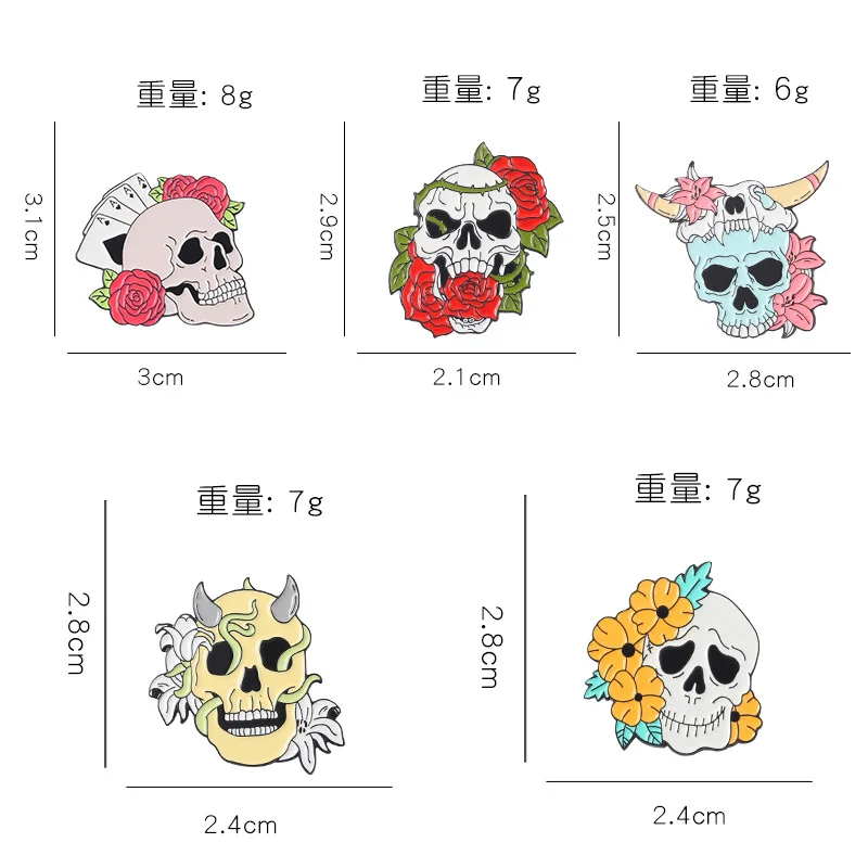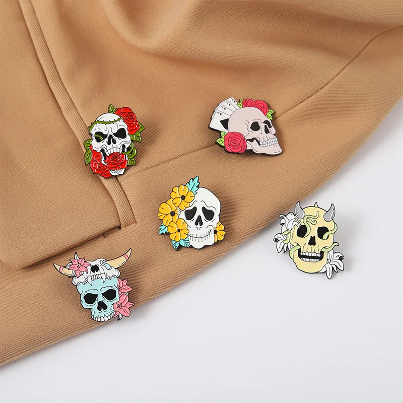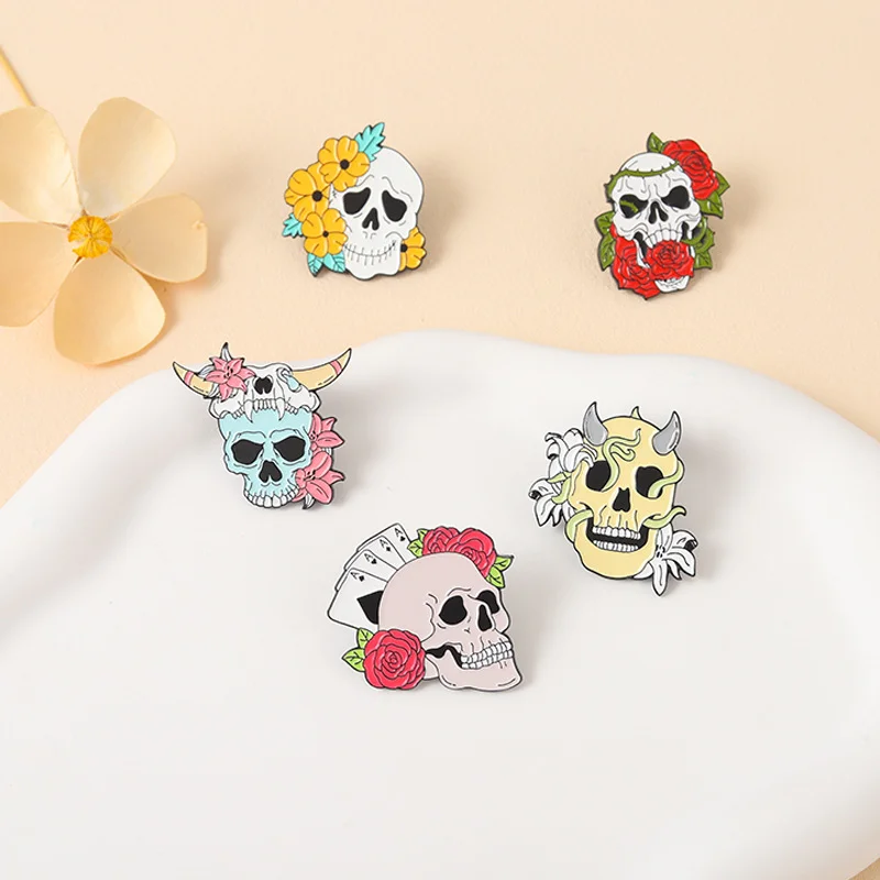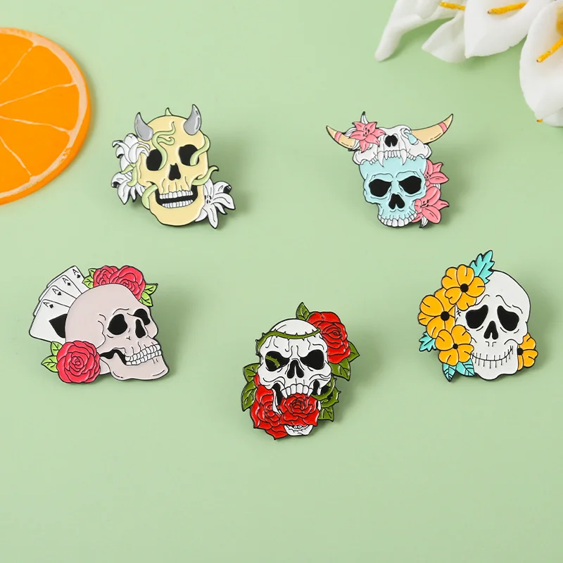 Punk Halloween Skeleton Enamel Pins Rose Brooch Hat Decoration Chest Ornament Skull Horror Badge Pin Rose