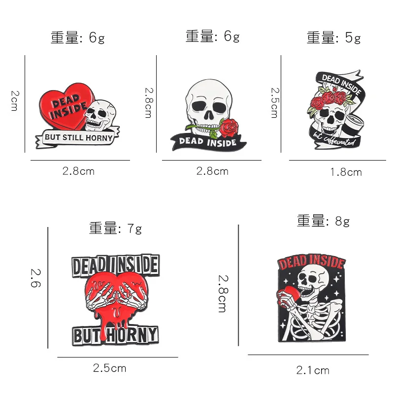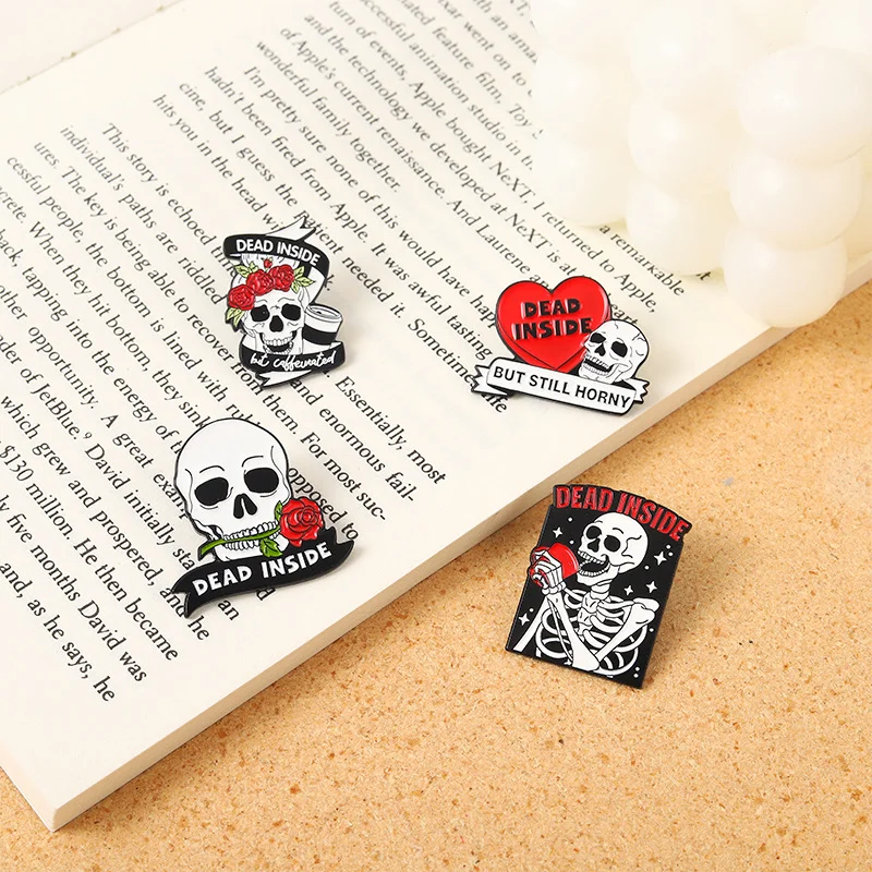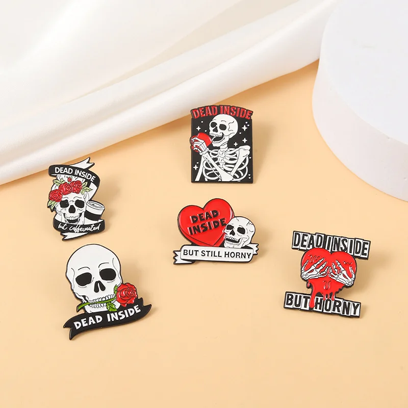 Skull Halloween Enamel Pin Punk Style Hot Selling Skull Metal Brooch Red Love Rose Confession Skull Horror Badge Silk Scarf Buckle