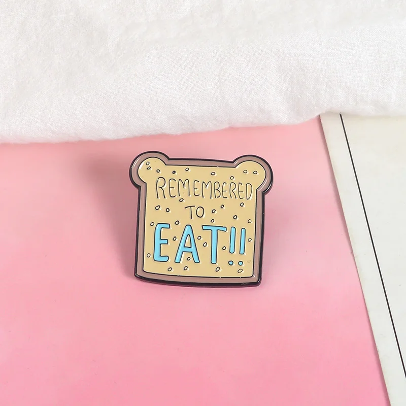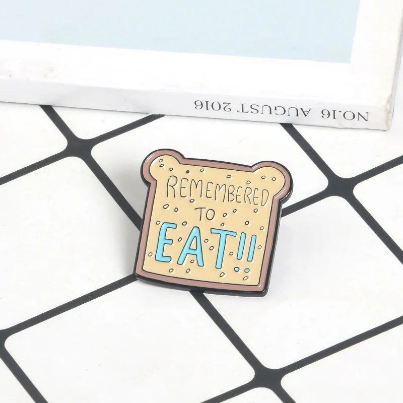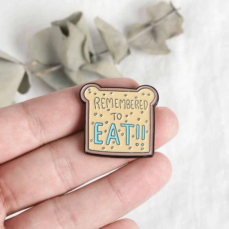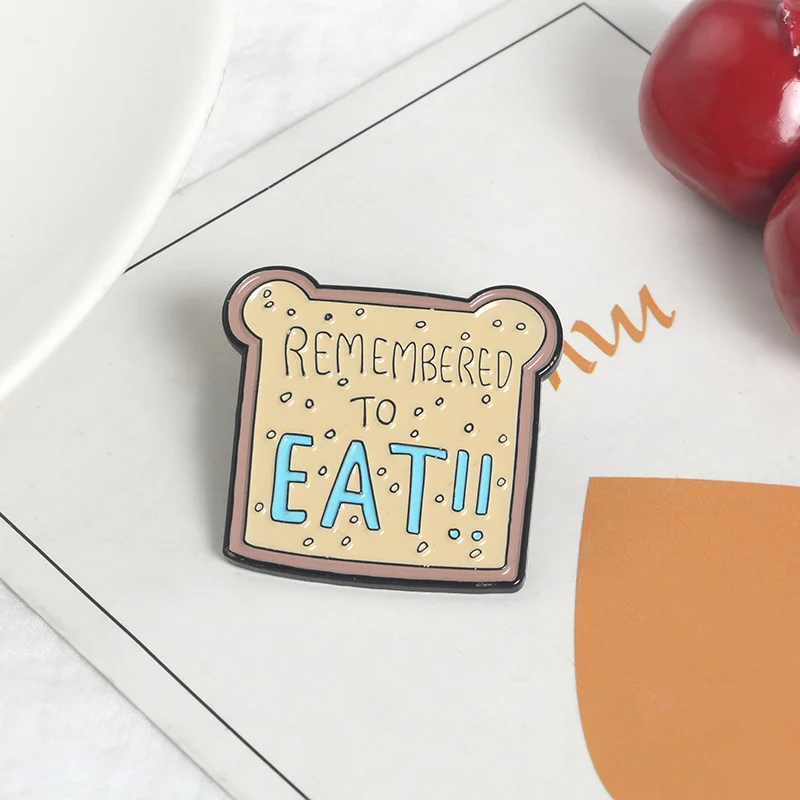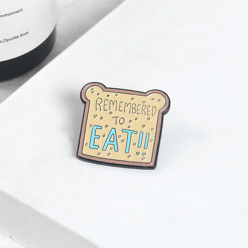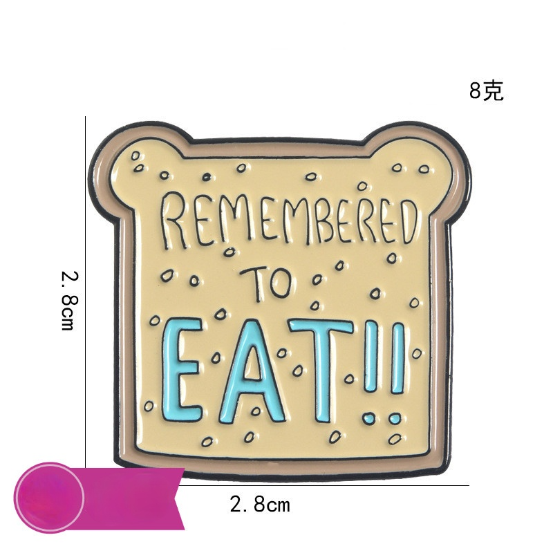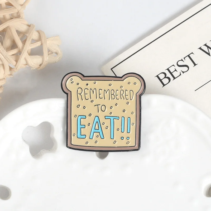 Remeber To EAT ! Cute Cartoon Toast Bread Slices Breakfast Brooches Denim Coat Pin Shirt Badge Enamel Pins Gift for Friends