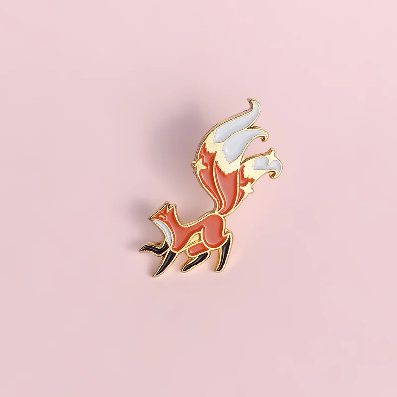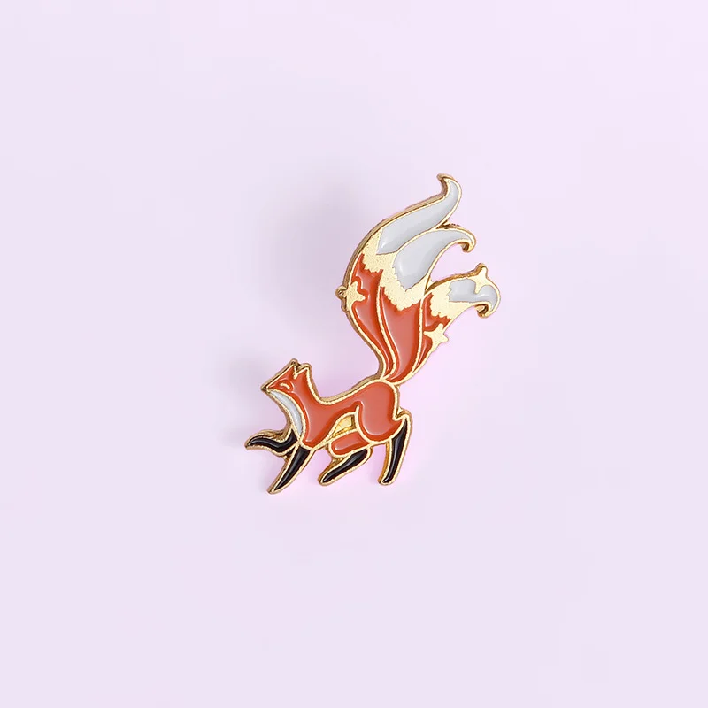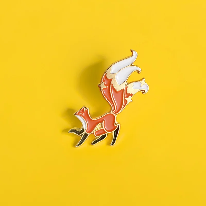 Creative Cartoon Animal Red Fox Enamel Alloy Brooch Personality Cute Long Tail Fox Paint Brooch Badge