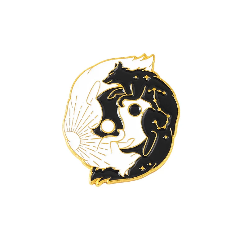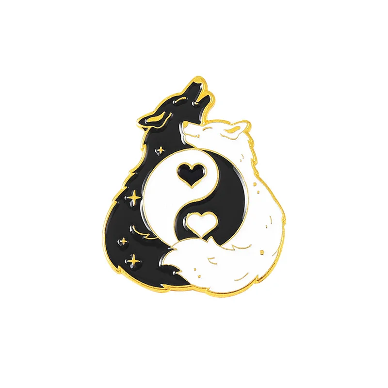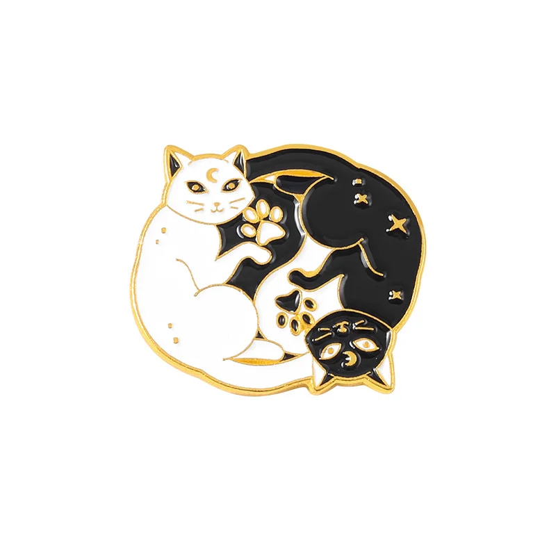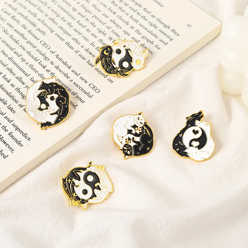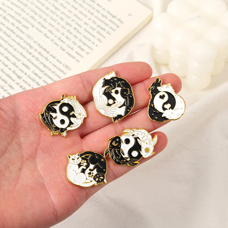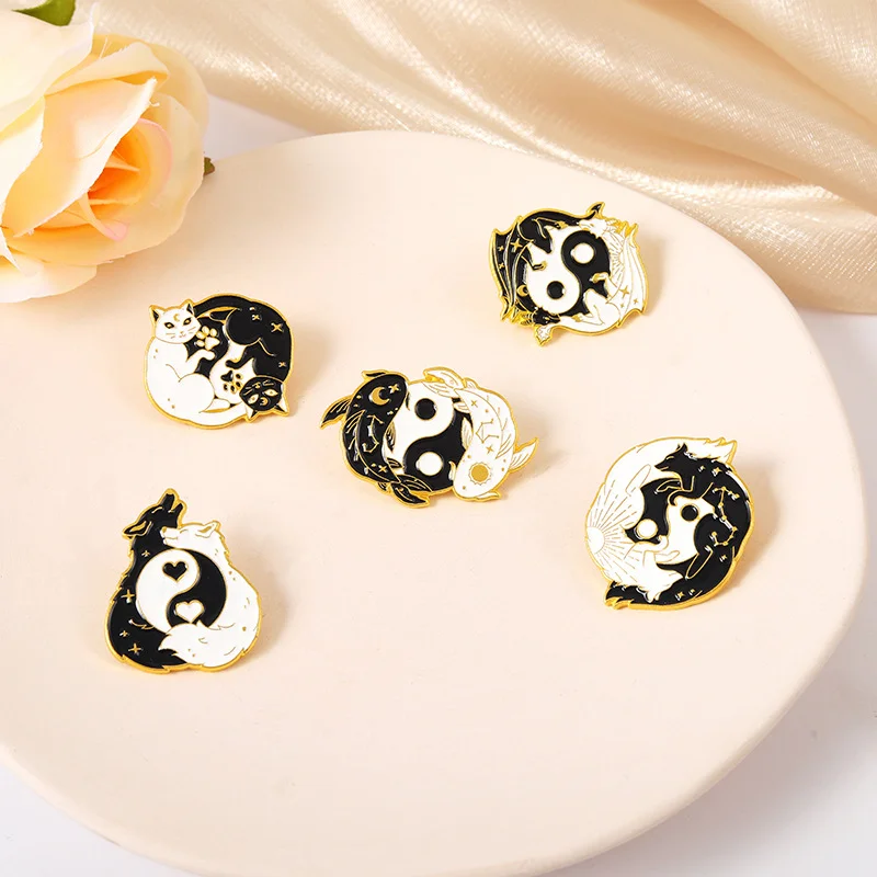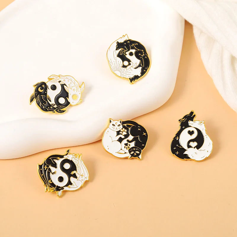 Fashion Enamel Pin Chinese Traditional Yinyang Tai Chi Bagua Carp Fox Black Cat Metal Badge Pins Pterosaur Electroplating Waist Pin Clothing Accessories Pectoral