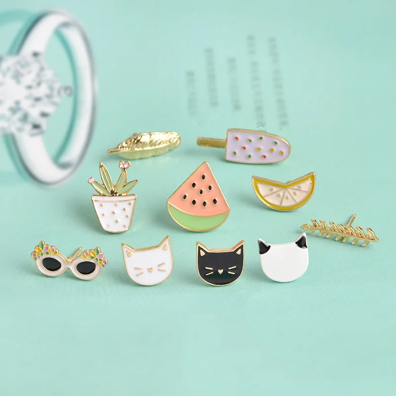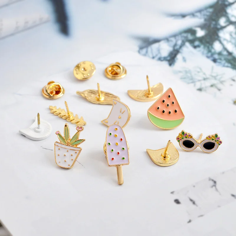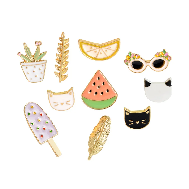 Amazon Explosive Jewelry Cartoon Set Brooch Popsicle Watermelon Leaf Fruit Animal Potted Clothing Decoration