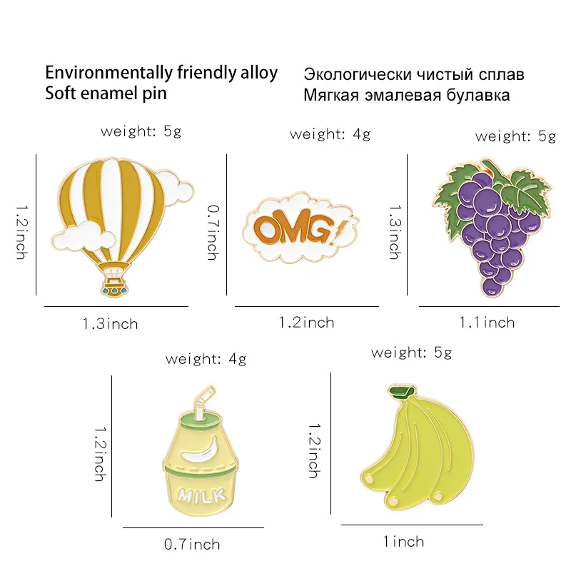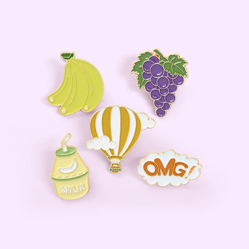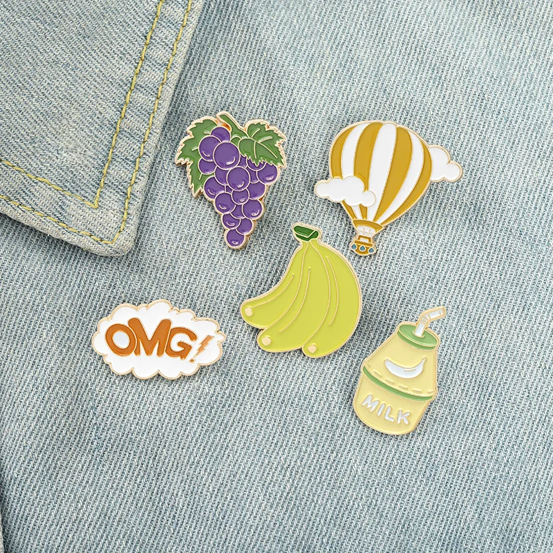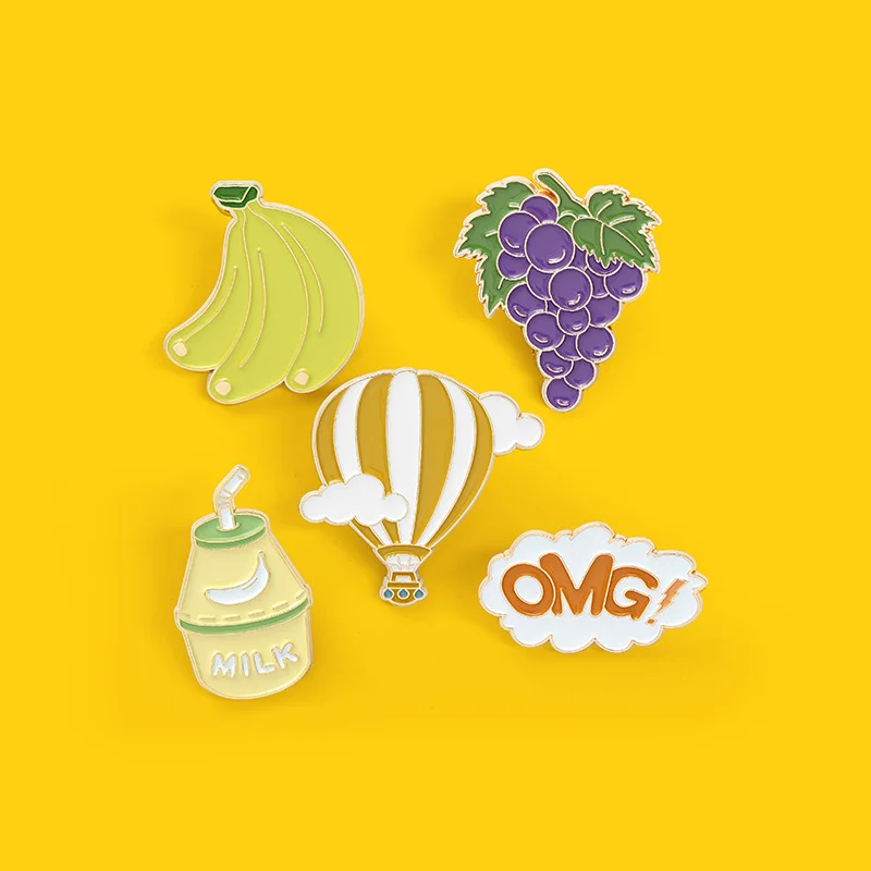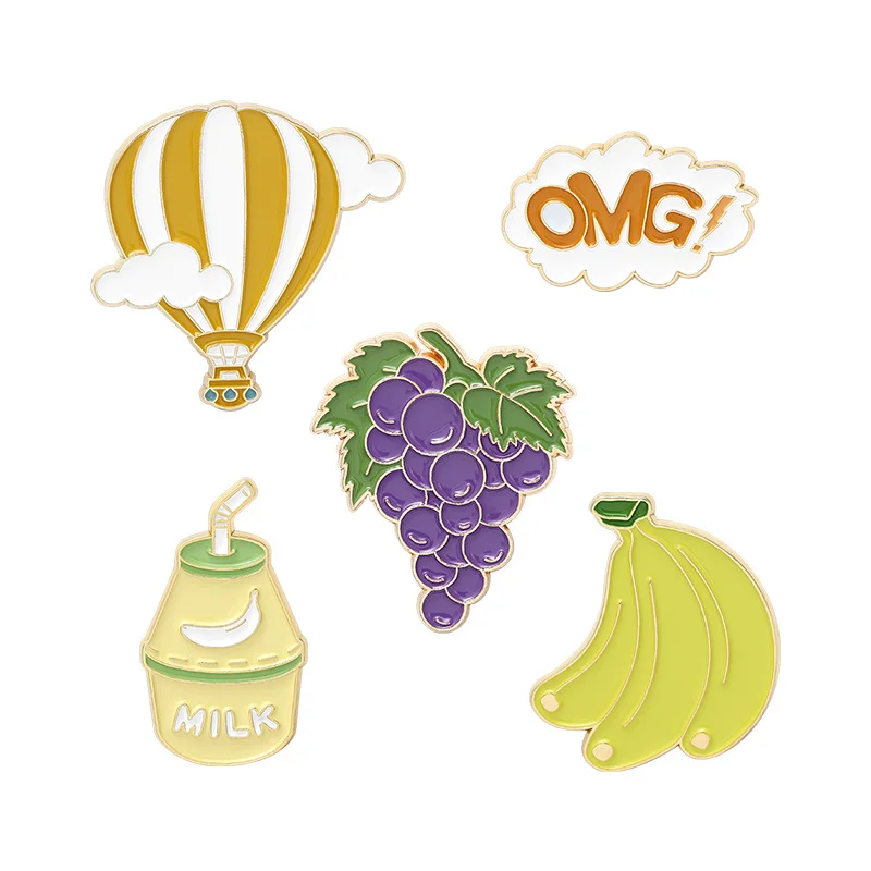 Cartoon Personality Creative Mini Hot Air Balloon Milk Grape Brooch Shape Badge Accessories Paint Brooch Wholesale