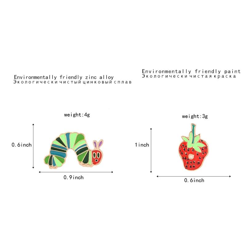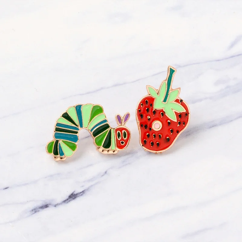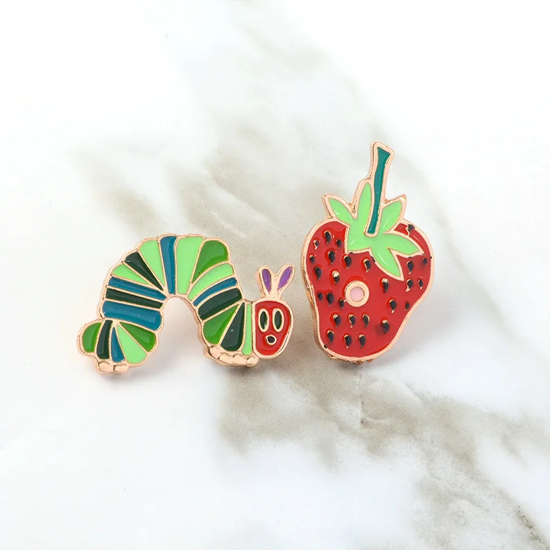 Wish explosion models cartoon funny broken strawberry green cabbage insect dripping oil brooch super cute brooch clothing wholesale