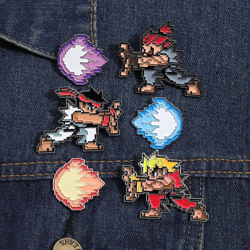 Street Game Enamel Pin Brooch, Cool Fighting Game Metal Badge, Childhood Memory Gift Wholesale