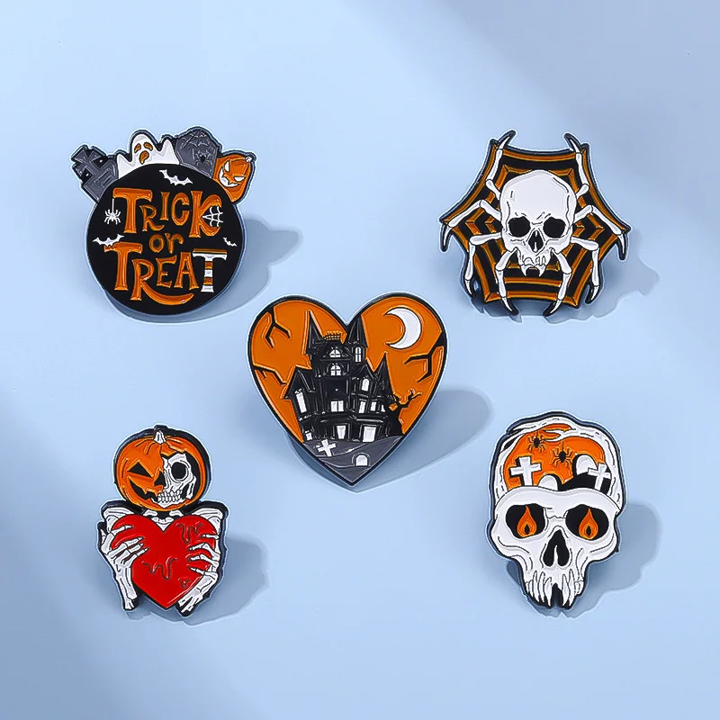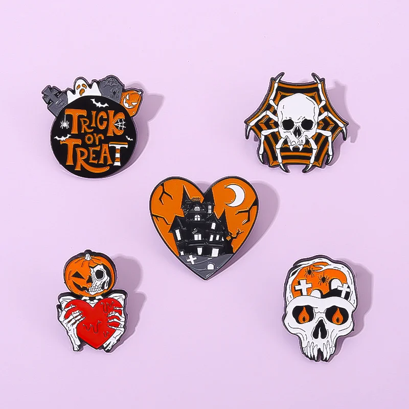 Halloween Brooch Skull Collection Pumpkin Skull Spider Punk Dark Ornament Badge Enamel