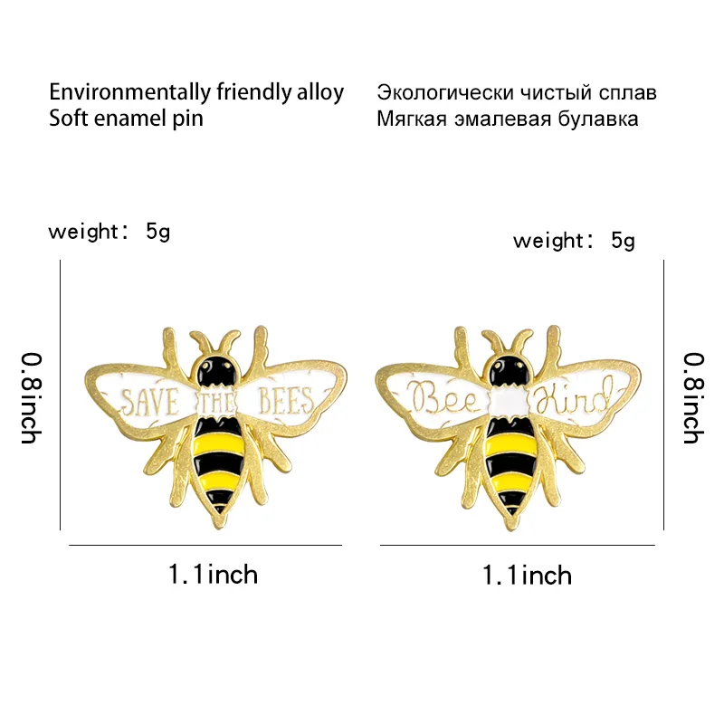 Bee Kind Save The Bees Pin Honey Bee Yellow Soft Enamel Lapel Pin Cartoon Animal Brooches For Women Men Badges Wholesale