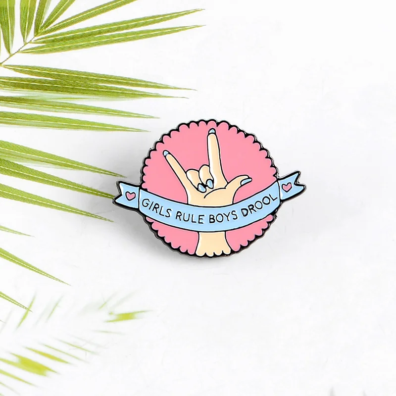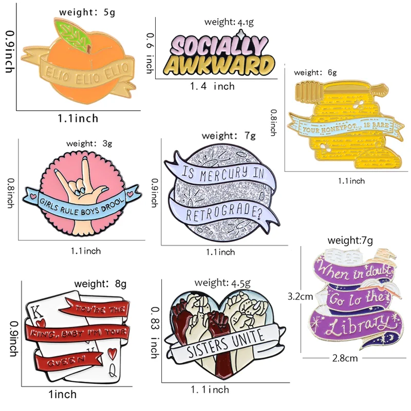 Feminist Best Friend Pins Brooches Honeybee Fruits Peach Heart Poker Ribbon Retrograde Enamel Metal Badges Friends Gifts