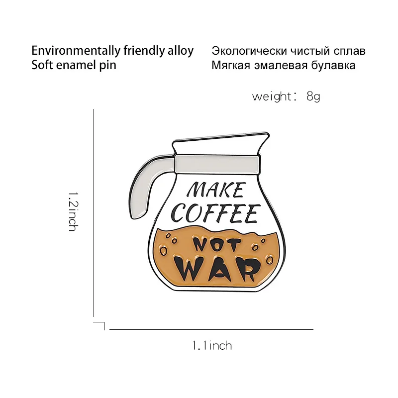 Foreign trade personality creative simple coffee pot alloy jewelry brooch personality coffee pot letter brooch accessories badge
