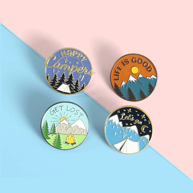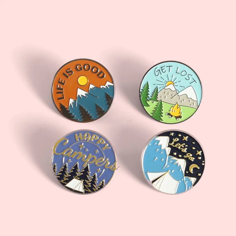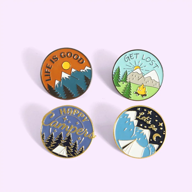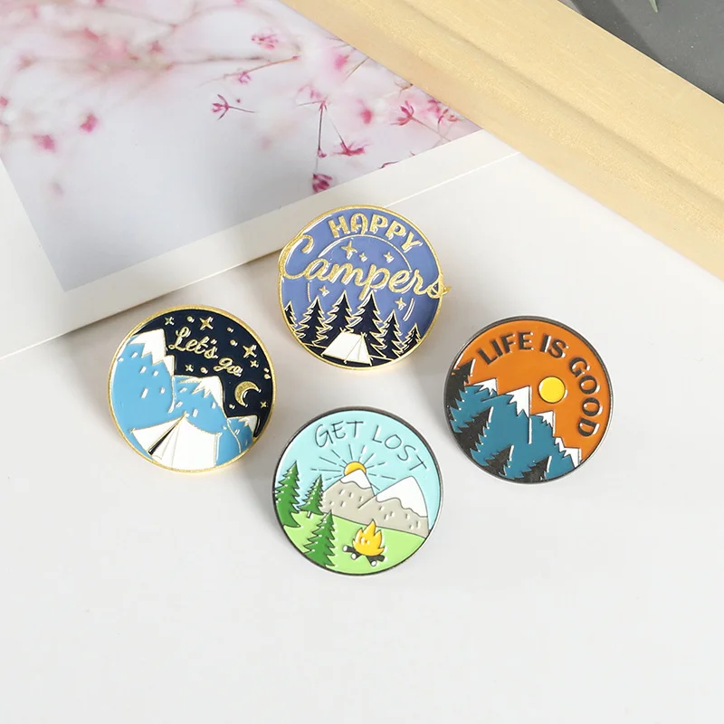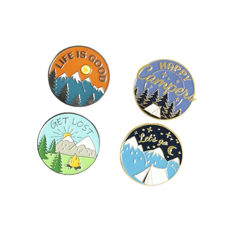 AliExpress Hot New Products Creative Cartoon Scenery Snow Mountain Pine Tree Pattern Alloy Paint Accessory Brooch