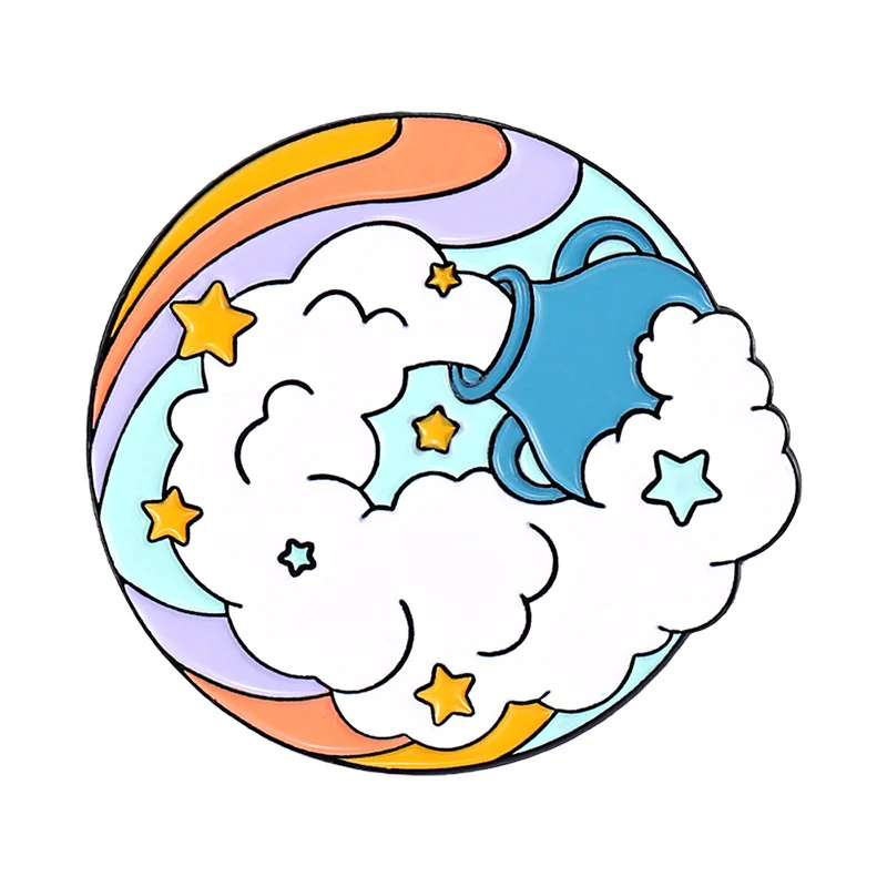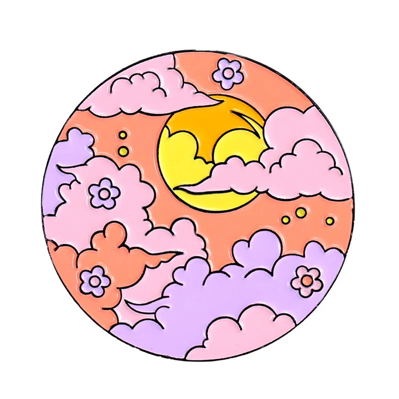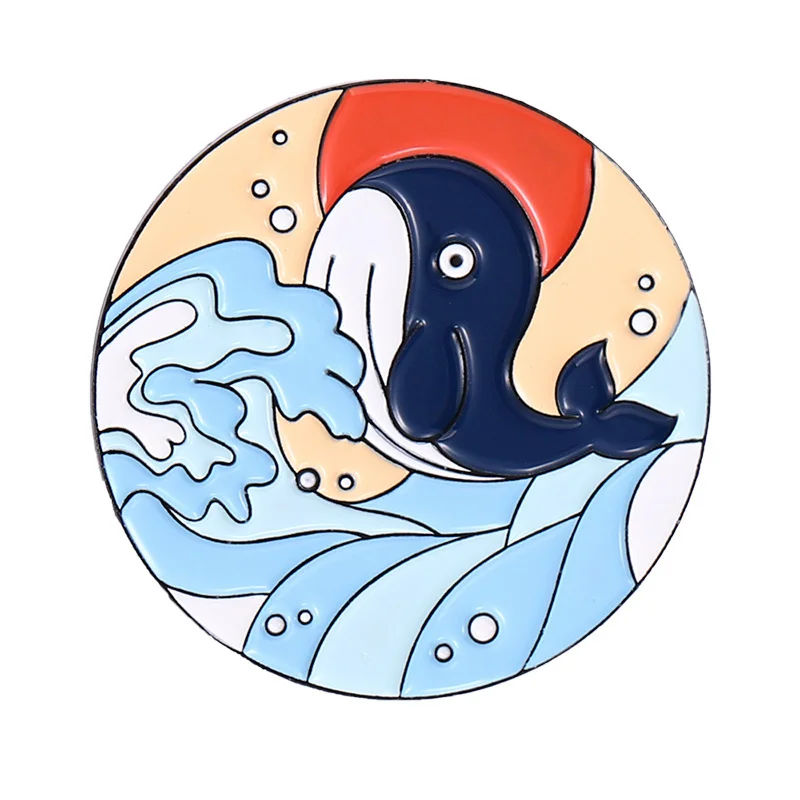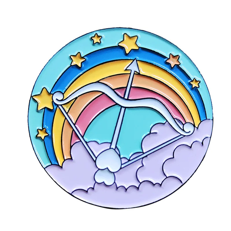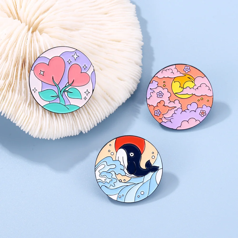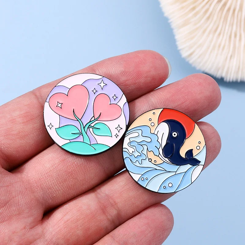 Bow and Arrow Scenery Round Sky White Cloud Rainbow Sea Wave Dolphin Whale Animal Flower Enamel Brooch Bag Decoration Badge