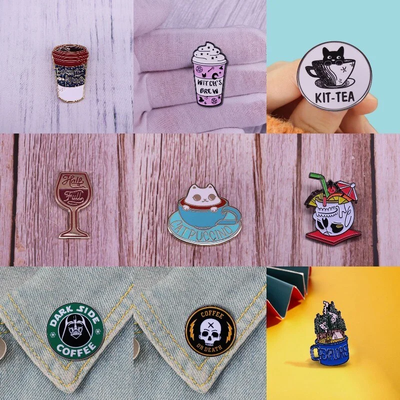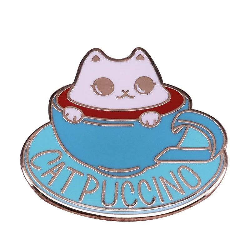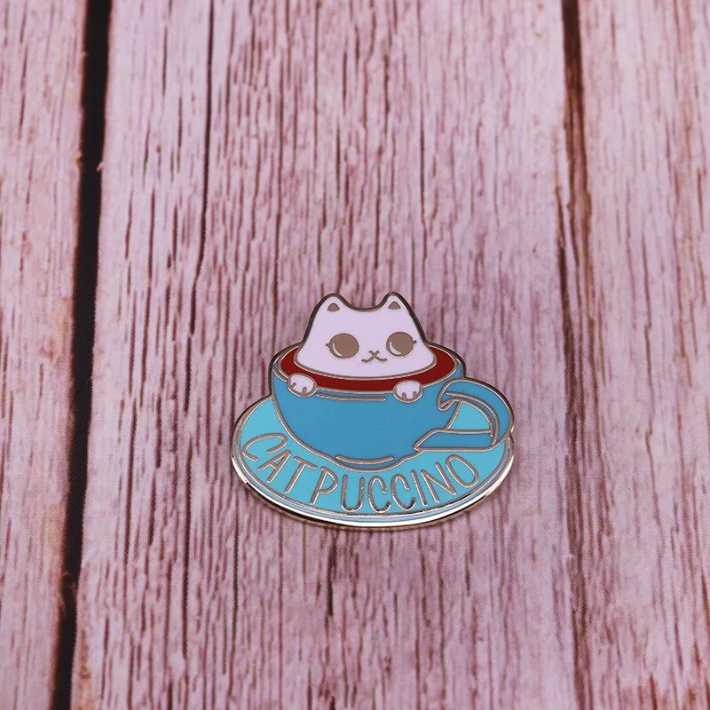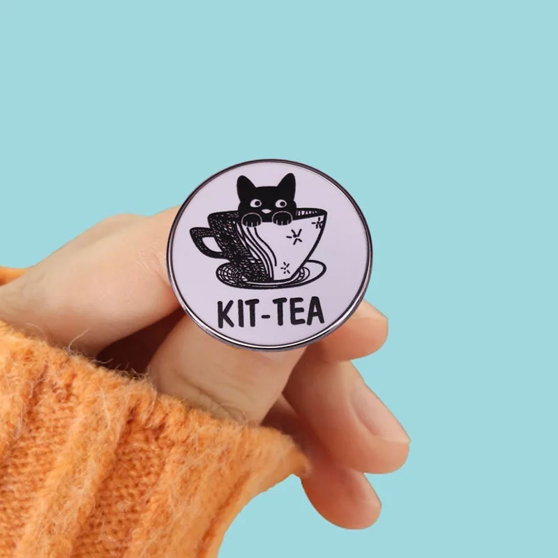 Kit Tea Skeleton Enamel Pins Cute Cat Teacup Goblet Cartoon Brooches Backpack Hat Jewelry Gifts For Friends